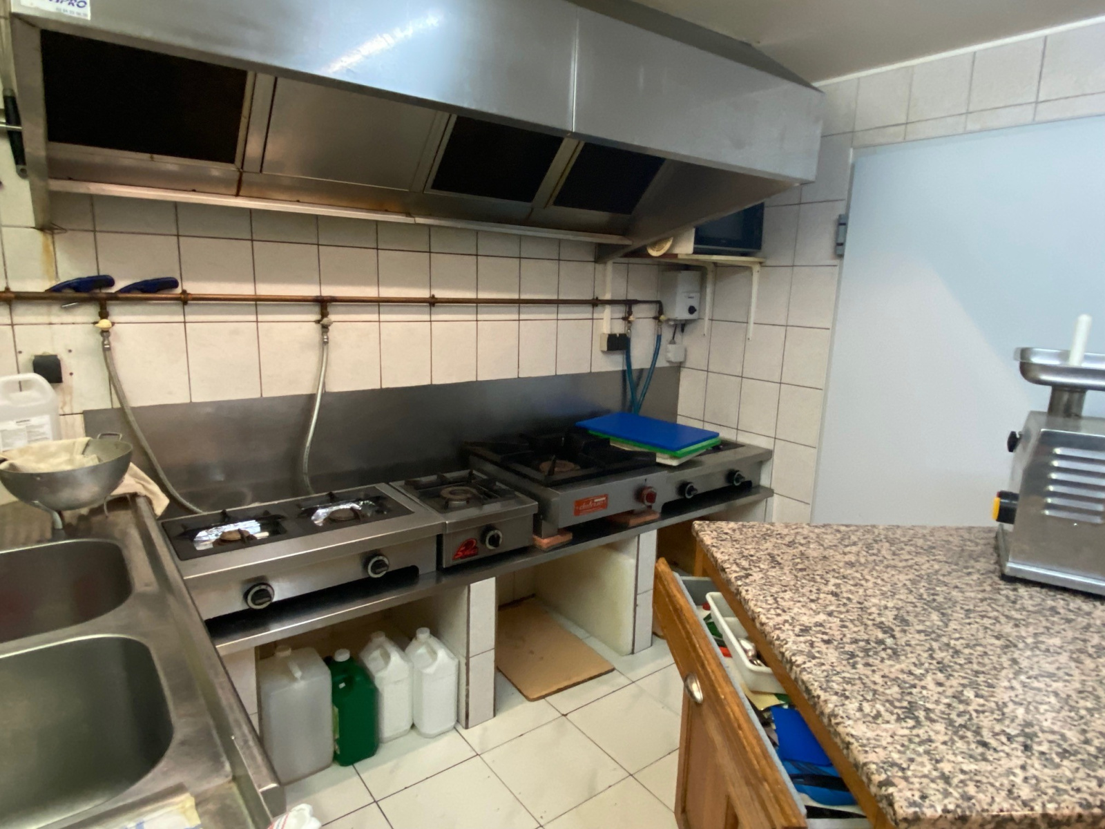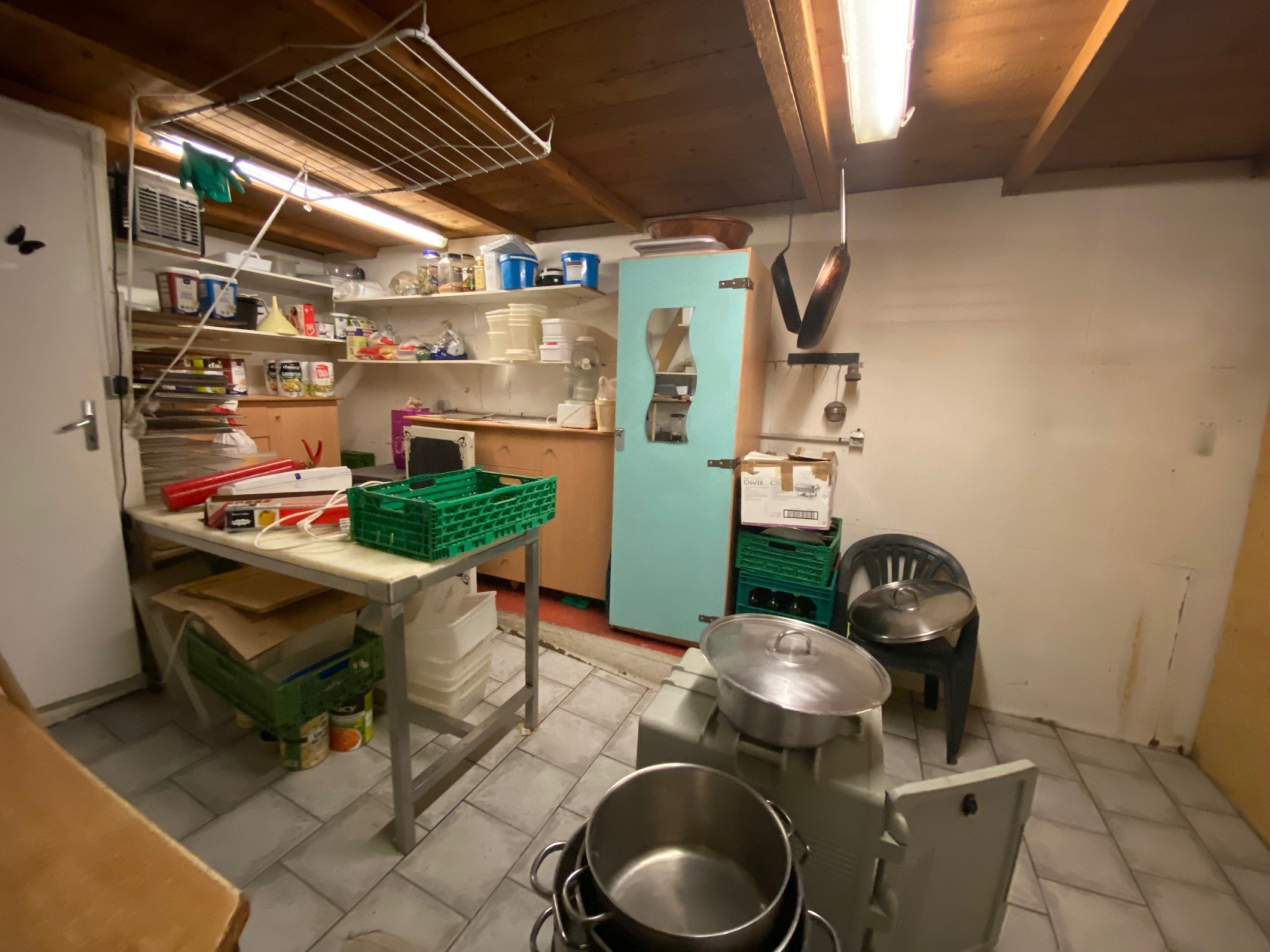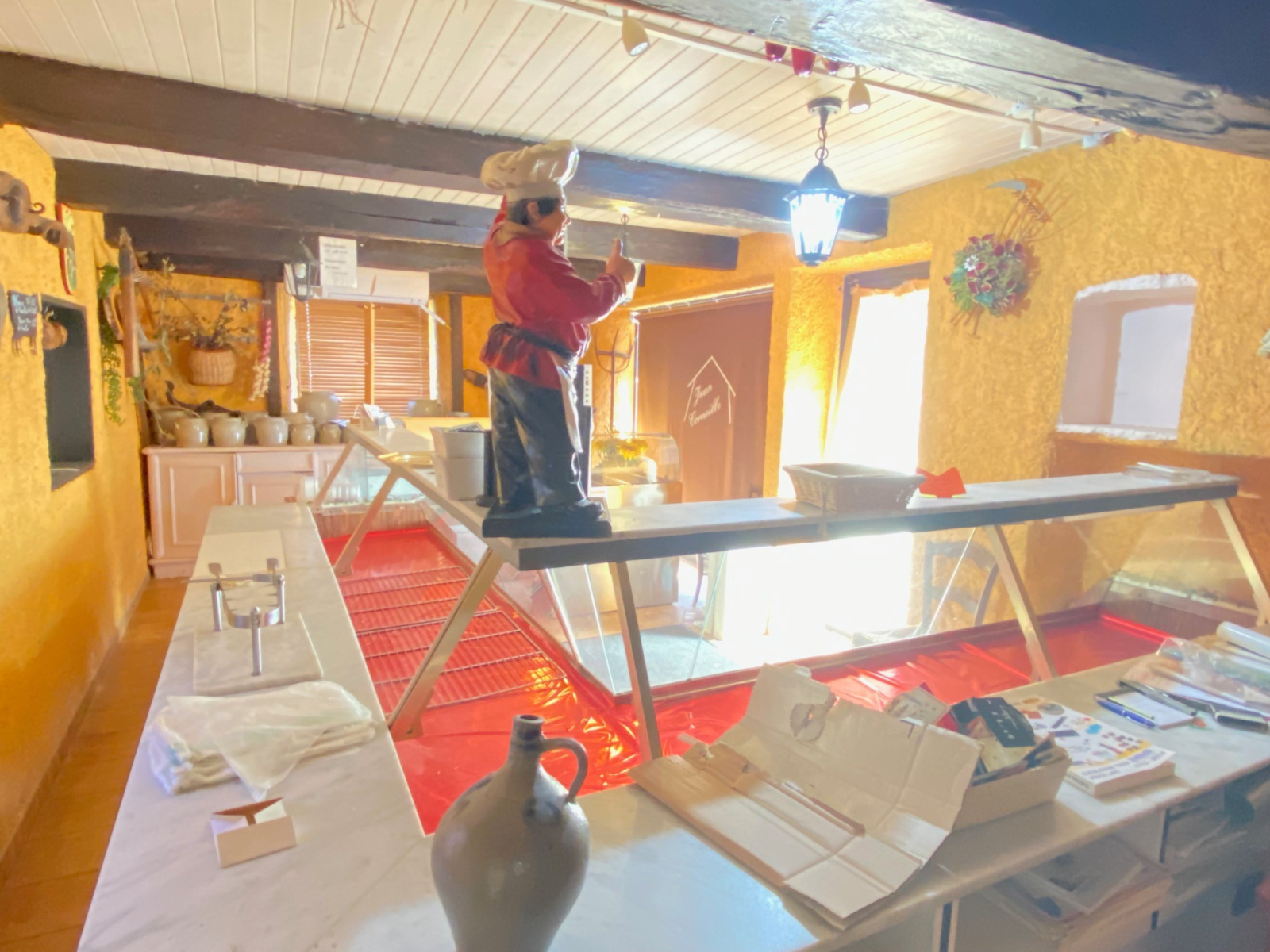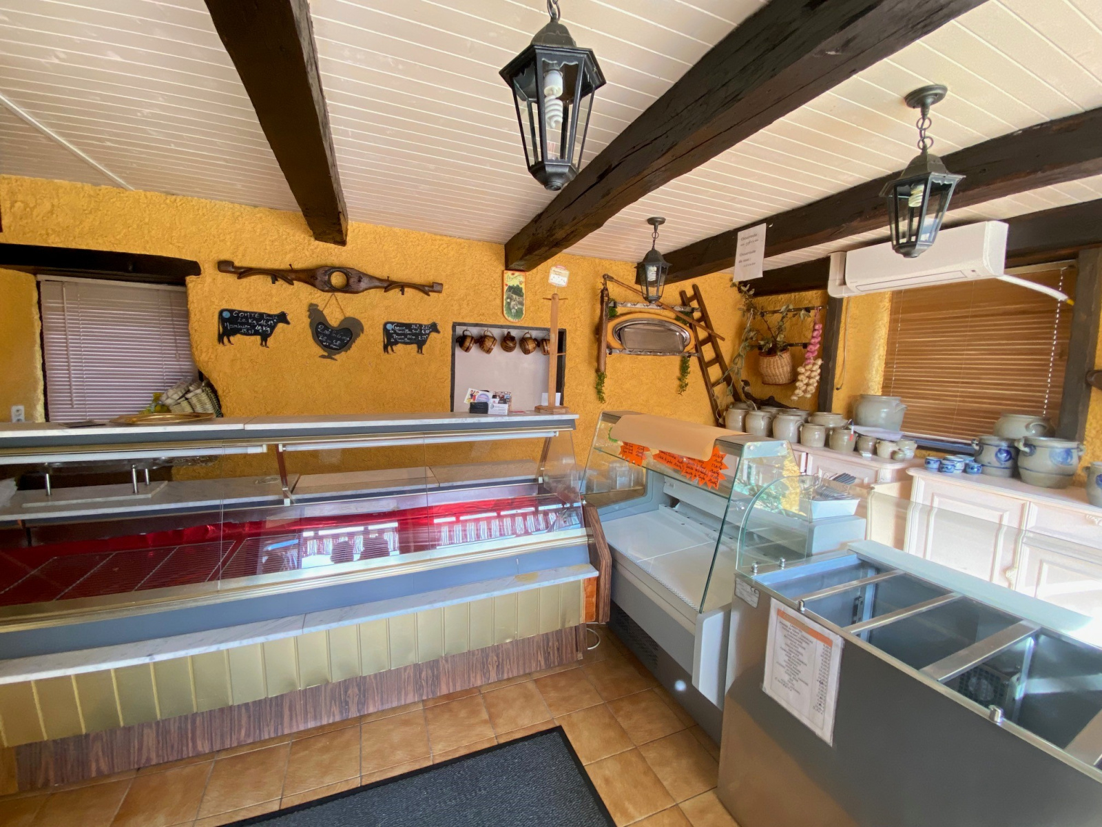 Utilisé pour une activité de traiteur, le bien comprend une aire de vente, une cuisine professionnelle, une chambre froide, une réserve avec WC, combles et parking .