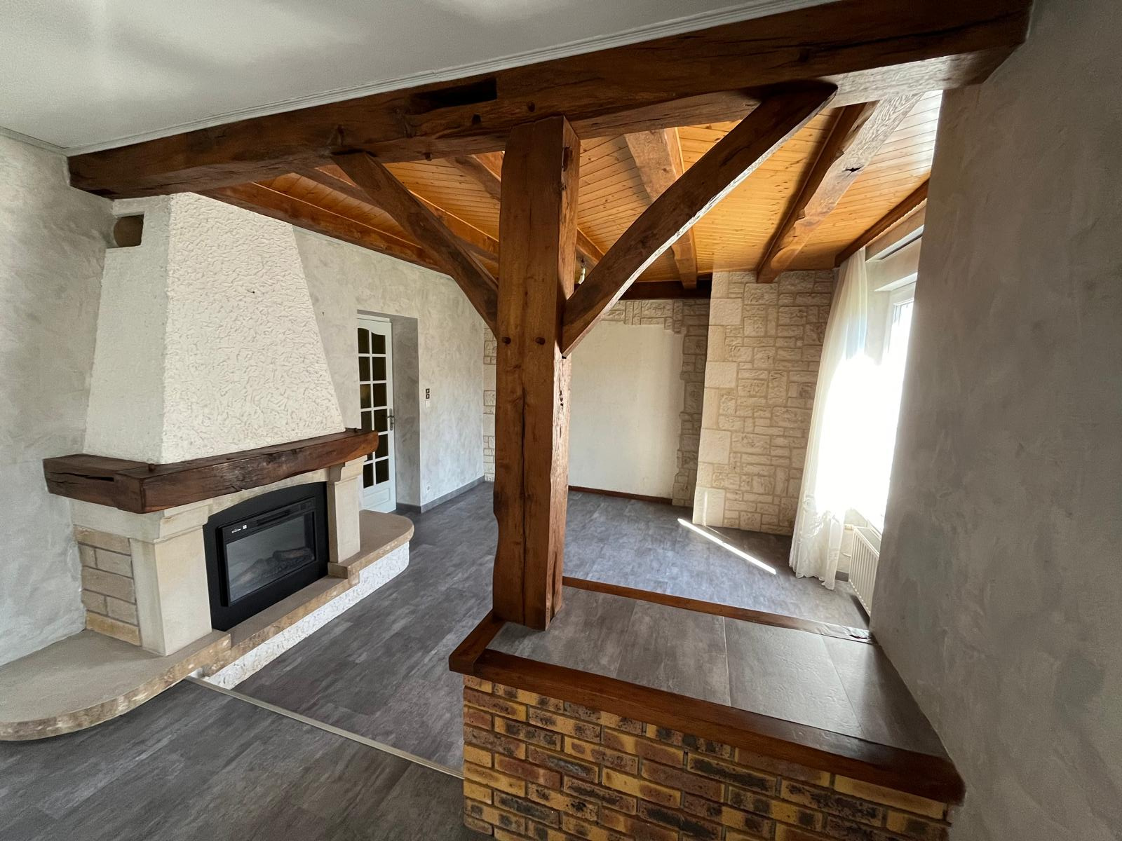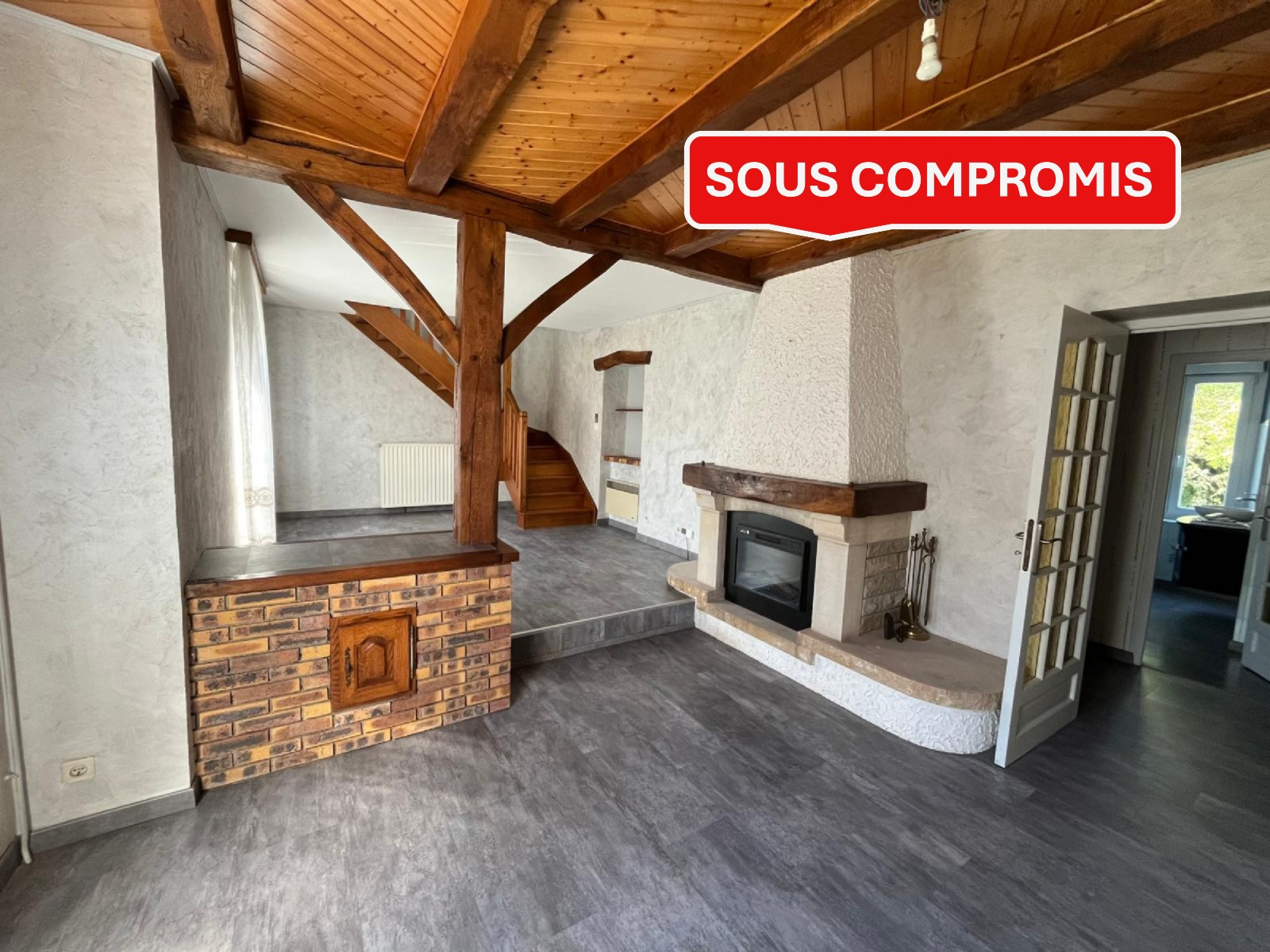 - au premier niveau : entrée sur couloir, cuisine séparée équipée, salle de bains, WC séparé, espace de vie de 28 m2 composé d'une salle à manger et du coin salon.