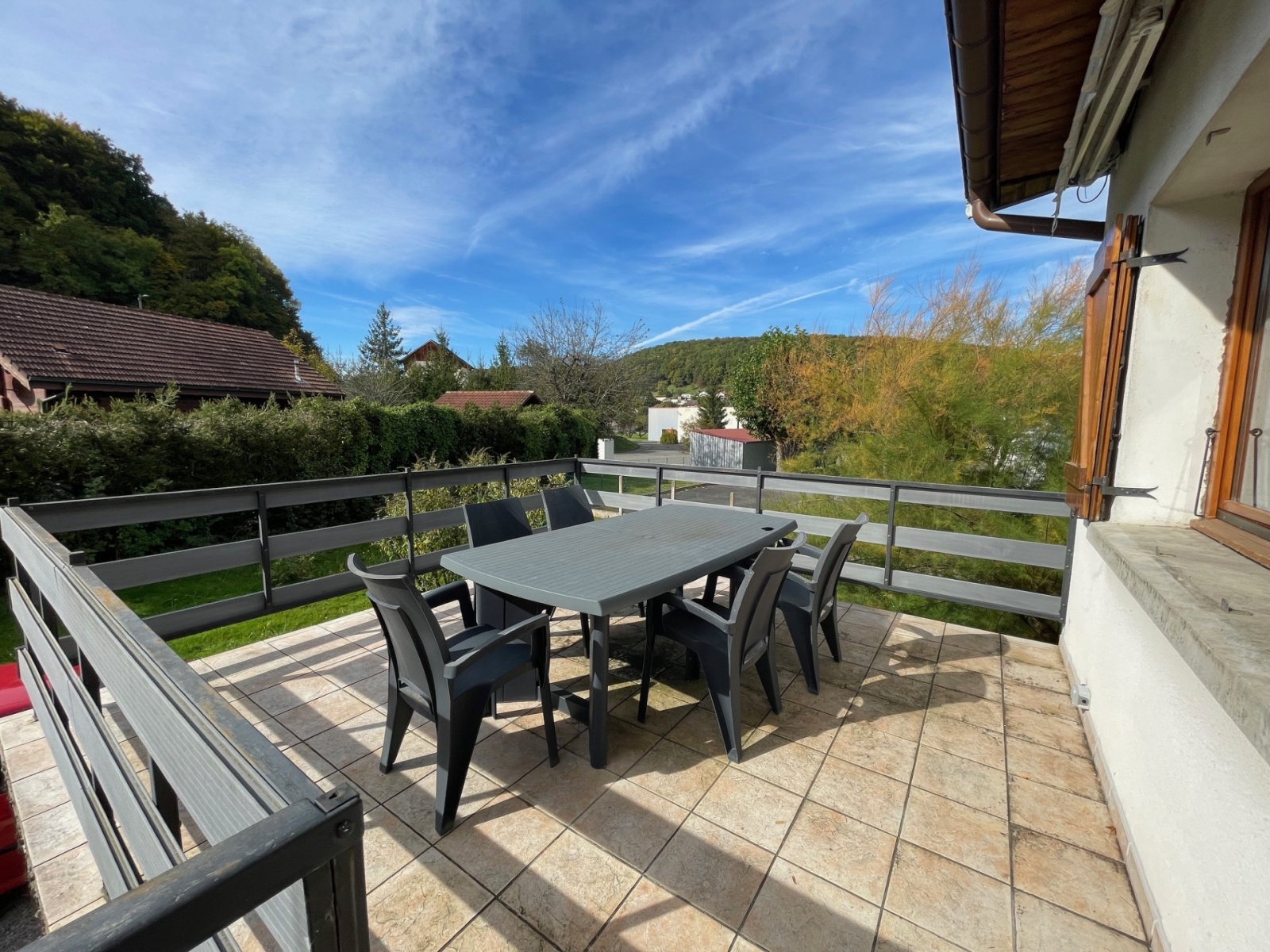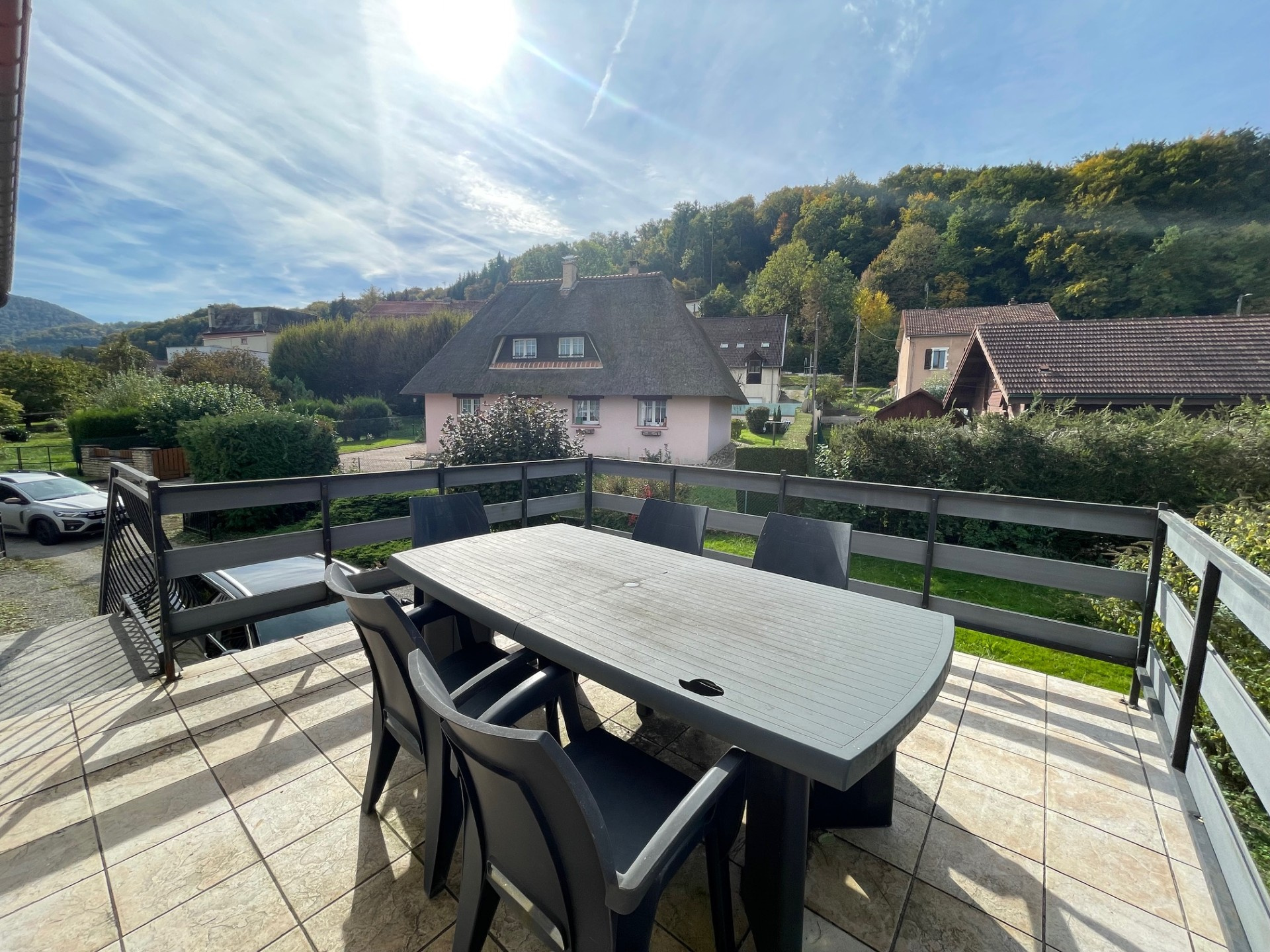 Une terrasse suspendue accessible depuis l' entrée et un balcon au niveau de la salle à manger complètent ce bien.