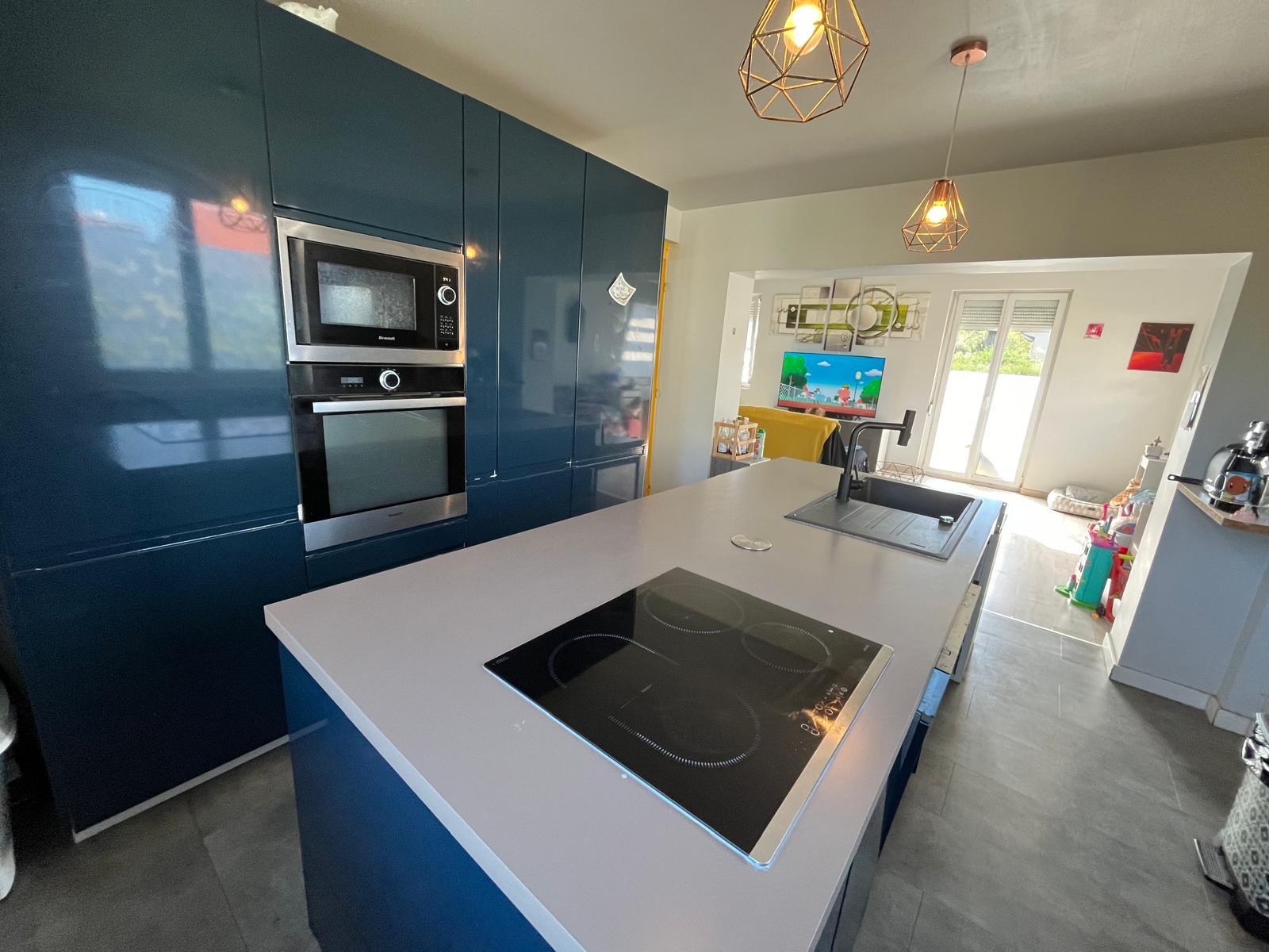 - au rez de chaussée sur élevé : entrée, pièce de vie de 60 m2 composée d'une cuisine ouverte ( 2019 ) sur salon-salle à manger avec accès à l'extérieur, une chambre, salle d'eau-buanderie, WC séparé.