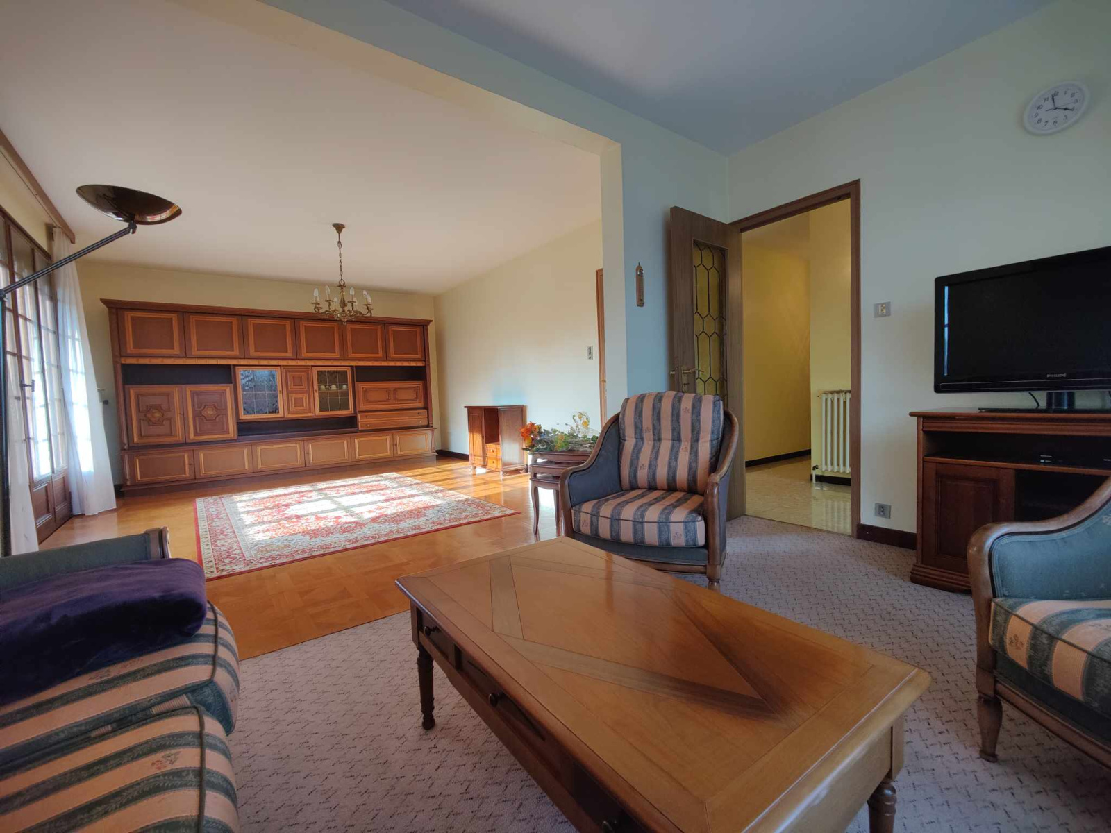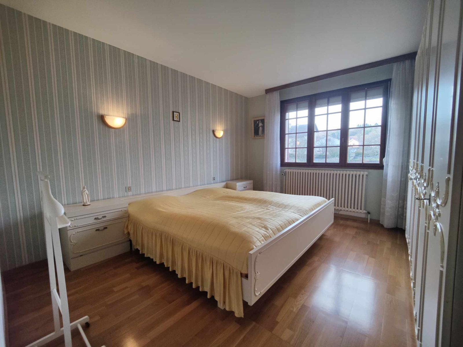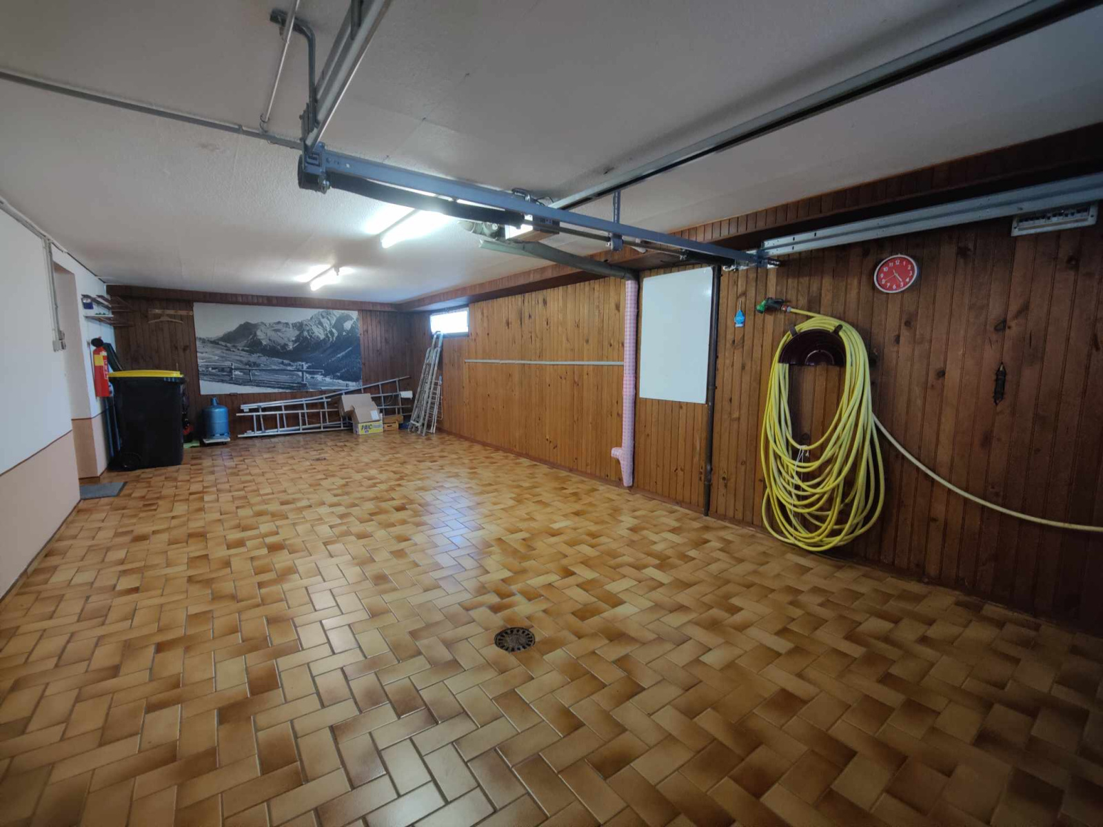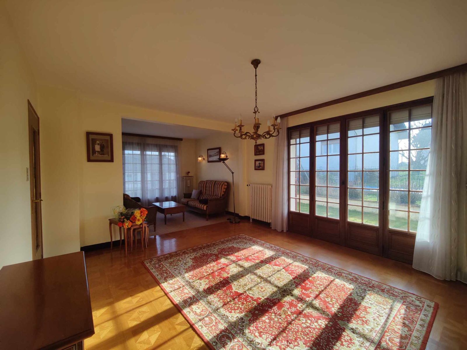 - Sous sol (carrelé et chauffé) : garage double, atelier / cave, pièce aménagée en cuisine, chaufferie / buanderie
