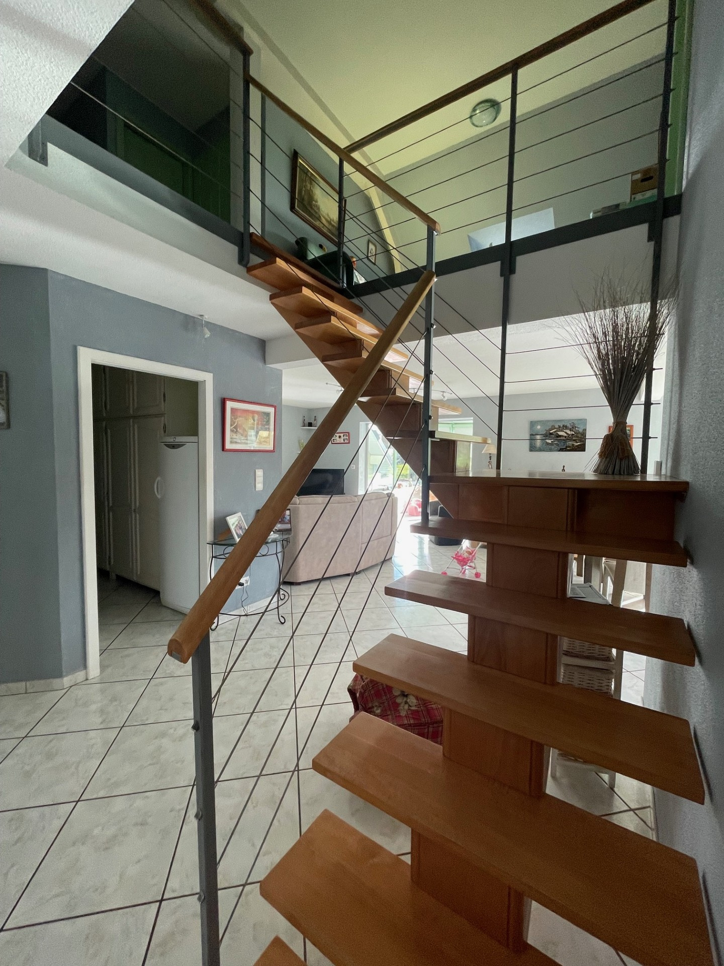 A l'étage la mezzanine dessert 3 chambres, une salle de bain et des toilettes séparés.