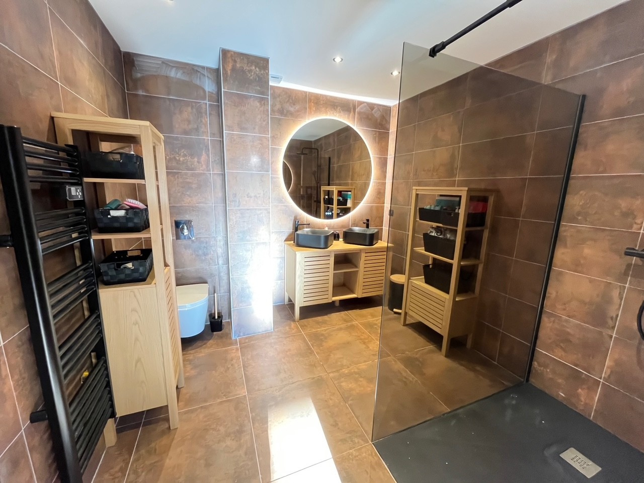 - à l'étage : mézannine et coin bureau, 2 chambres d'enfants, suite parentale ( chambre-dressing avec accès à une salle d'eau moderne ).