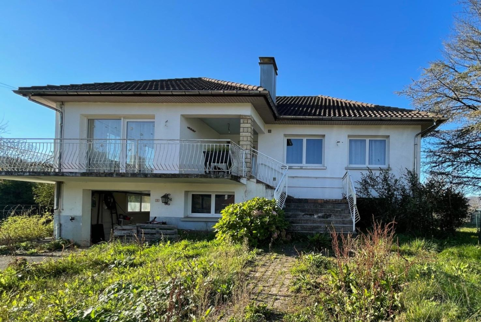 - Rez de chaussée surélevé : hall d'entrée, cuisine ouverte sur salon/séjour, salle de bain, wc et 3 chambres.
