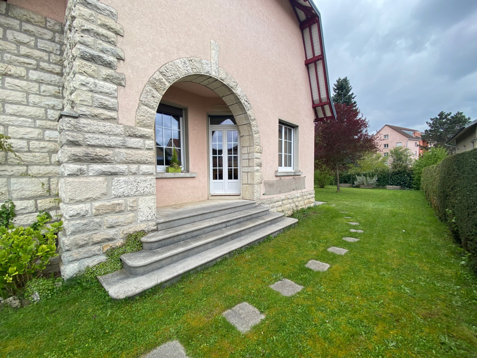 Notre agence vous propose en exclusivité à Seloncourt, à quelques pas du centre ville et de l'ensemble des commodités, une jolie maison de ville construite en 1935 sur un terrain plat, clos et arboré de 654 m2.