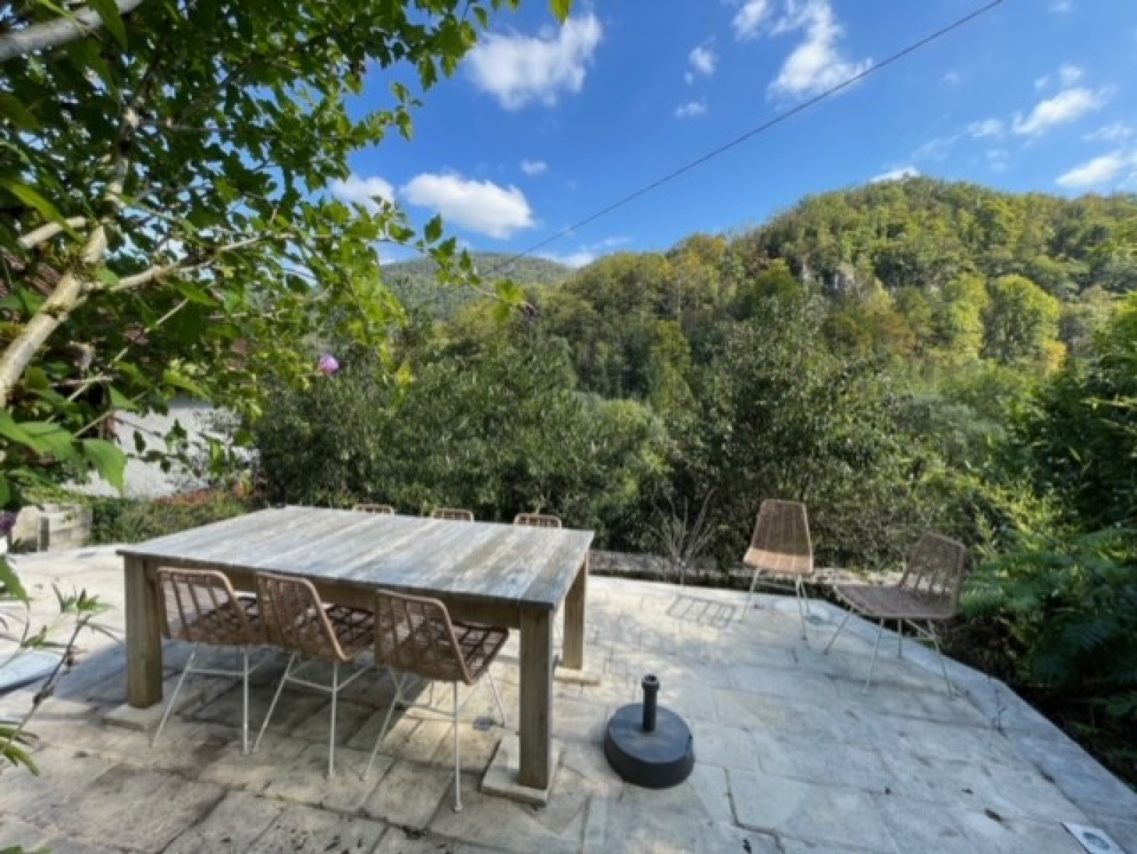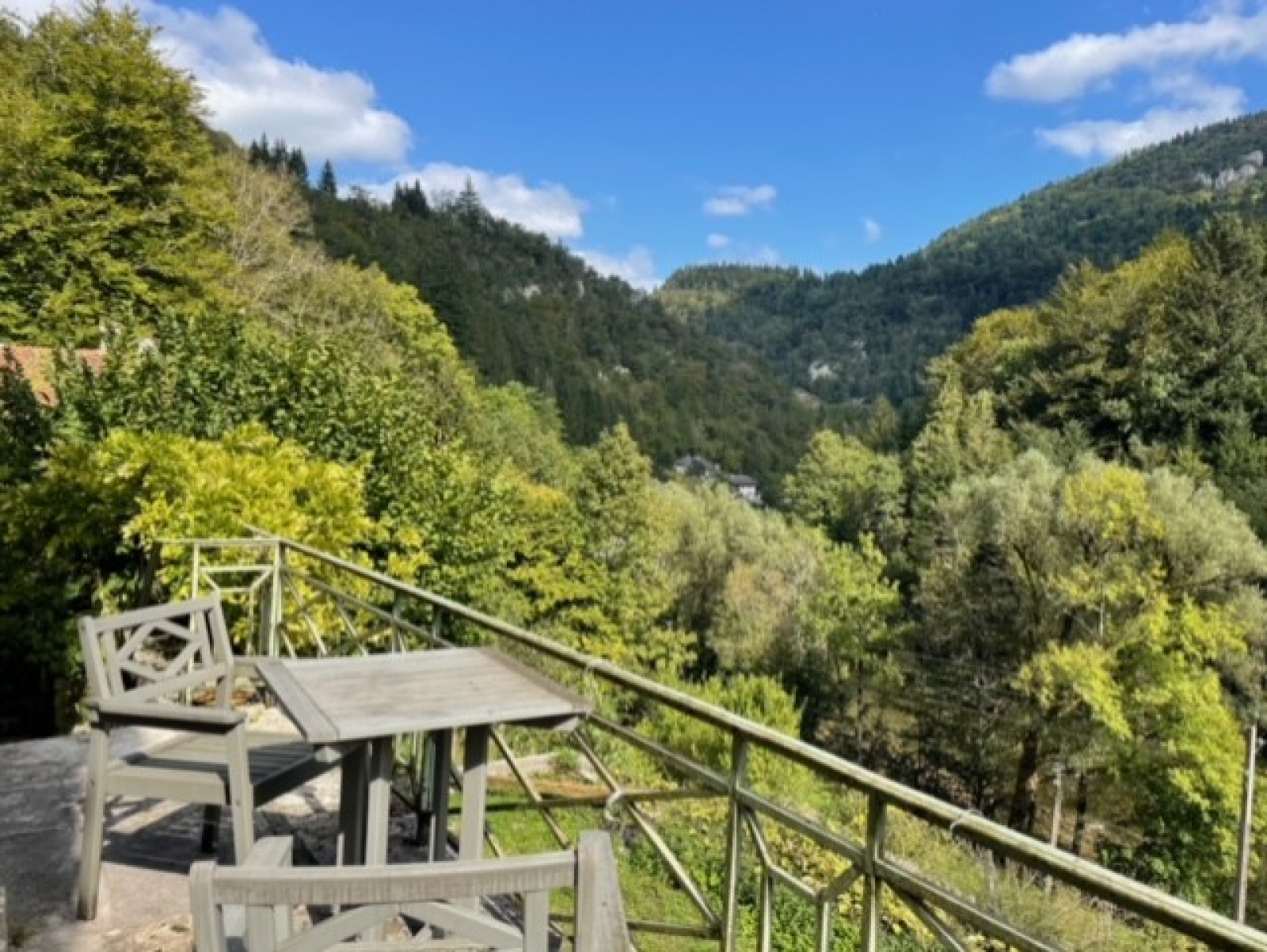 Le jardin aménagé en terrasse ,la nature environnante, un droit de pêche privé sur le Dessoubre offrent un cadre de vie au plus proche de la nature et et des commerces sur la commune de Saint Hippolyte.