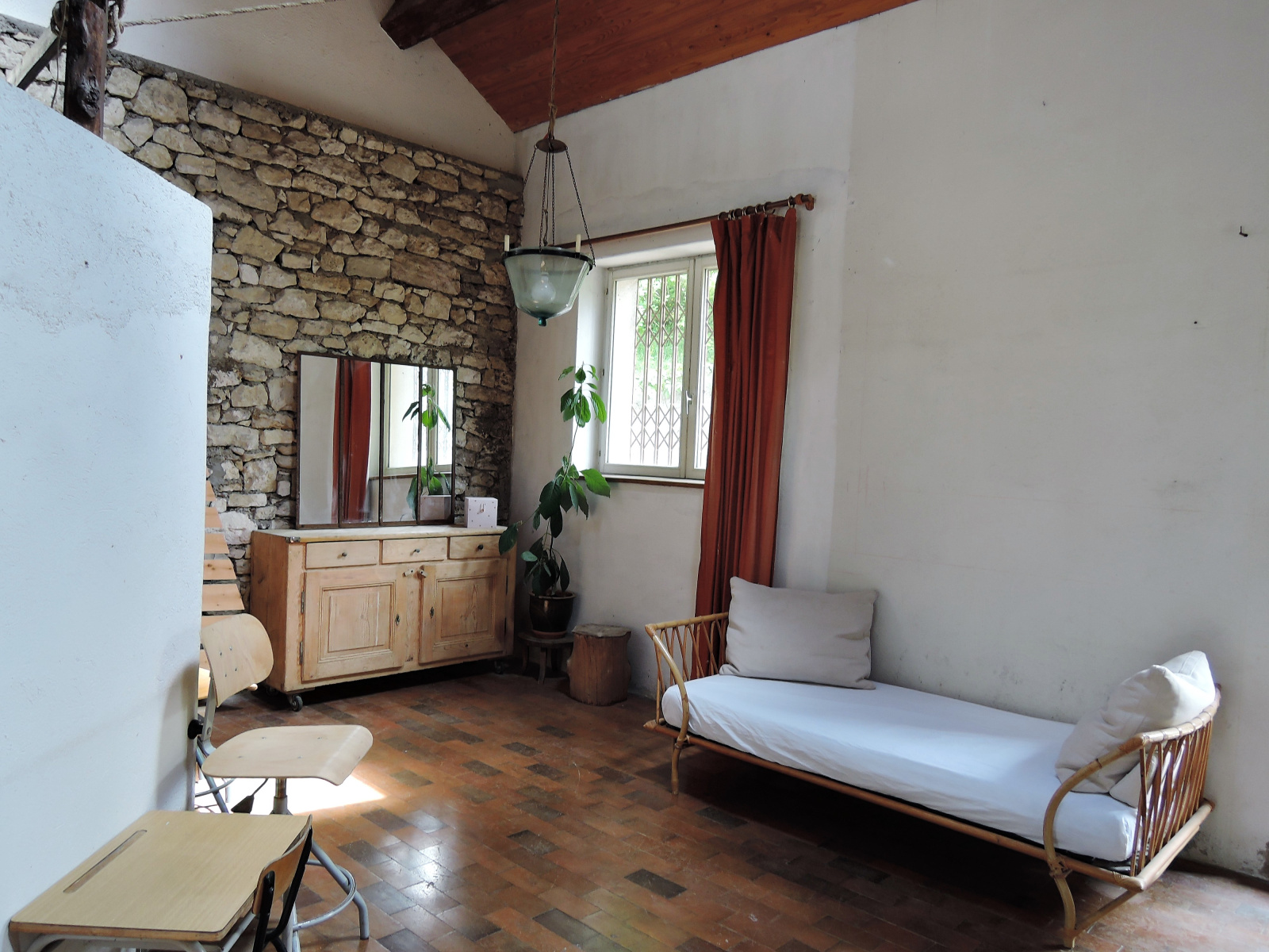 Entrée par un espace de vie atypique aménagé dans une grange rénovée de près de 60 m2, donnant accès à la terrasse et au terrain arboré; cette pièce aux volumes généreux est surplombée par 2 mézzanines dont une donnant sur une première chambre.