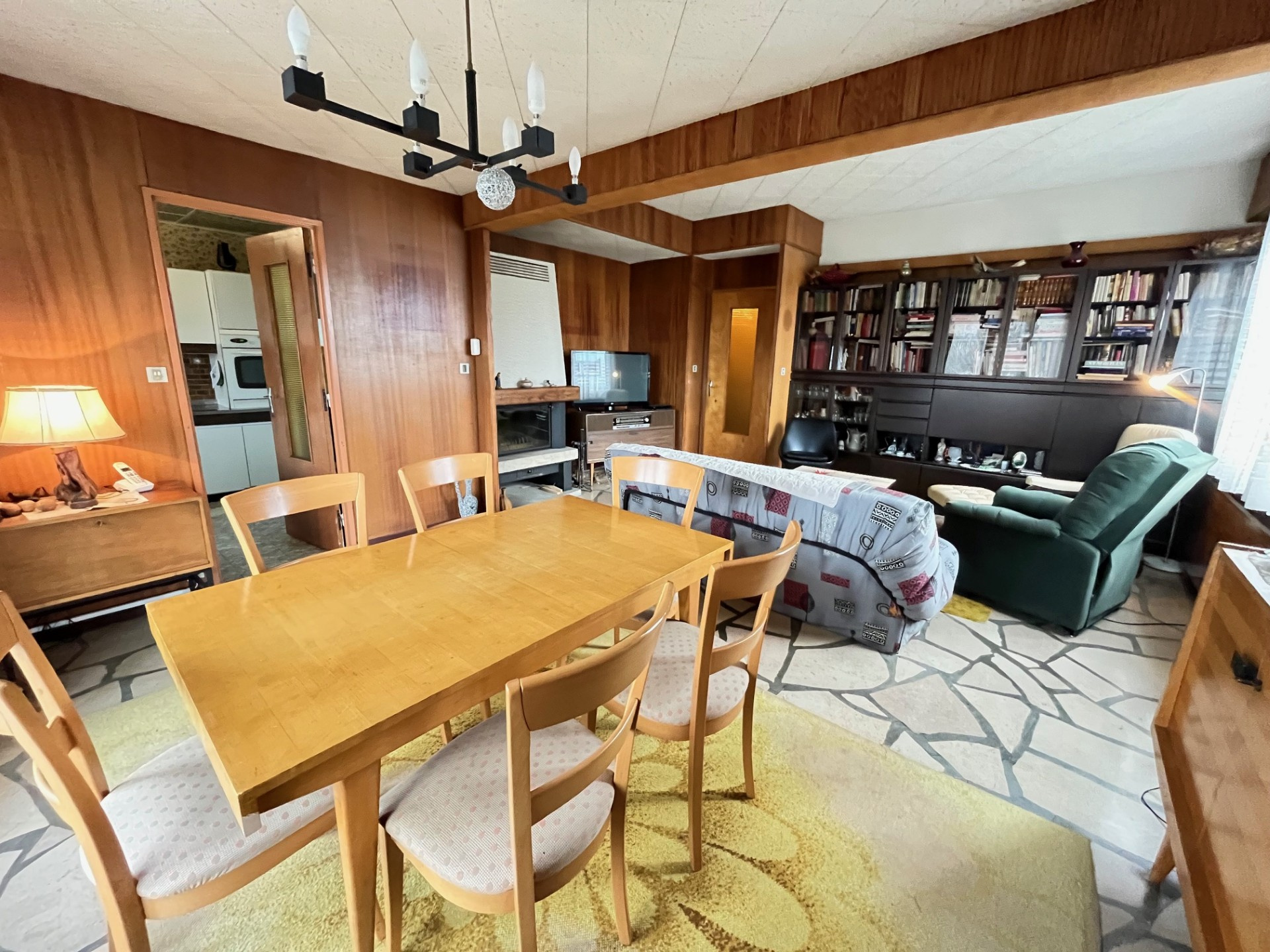 Caractéristiques techniques : toit plat, chauffage au fioul avec présence d'un insert dans la pièce de vie,