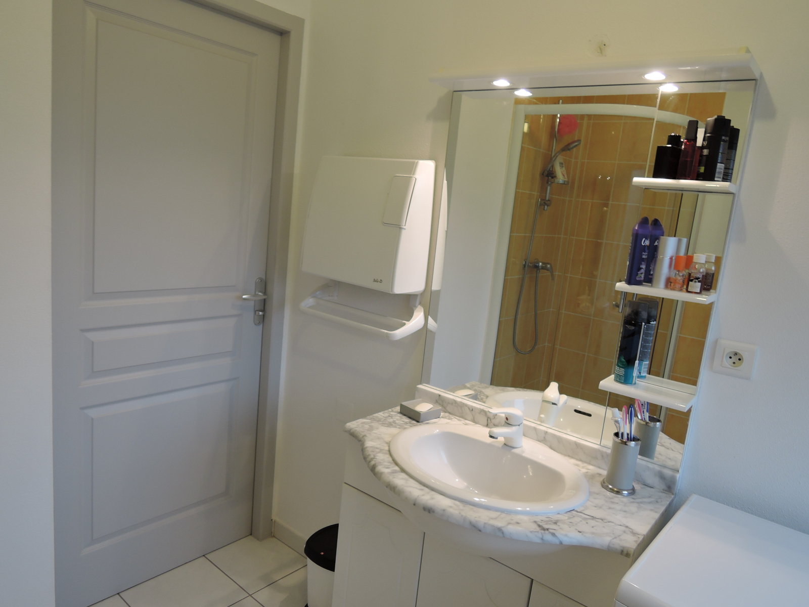 - entrée avec placard , vaste salle d'eau , chambre, pièce de vie composée d'un espace cuisine équipée.