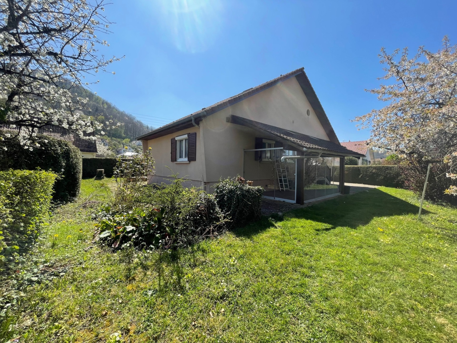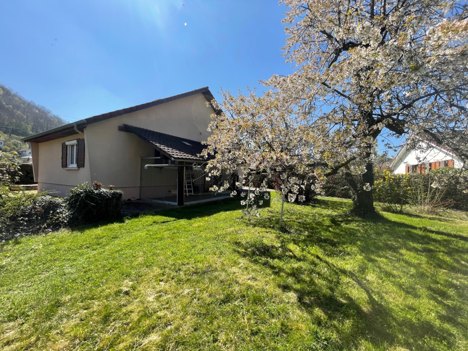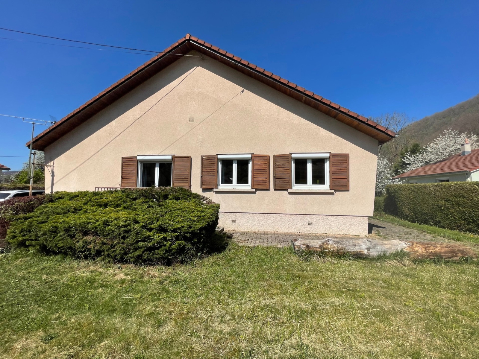 Notre agence vous propose en exclusivité à Pont de Roide proche de toutes commodités une maison individuelle de 128 m2 érigée sur un terrain de 10,18 ares.Ce bien construit en 1960 sur sous-sol complet est organisé comme suit: le rez -de-chaussée surélevé (4 marches) s'ouvre sur un espace distribuant une cuisine indépendante ,un salon salle à manger ,un bureau ,deux chambres,une salle d'eau et une pièce vestibule permettant l'accès à l'étage.