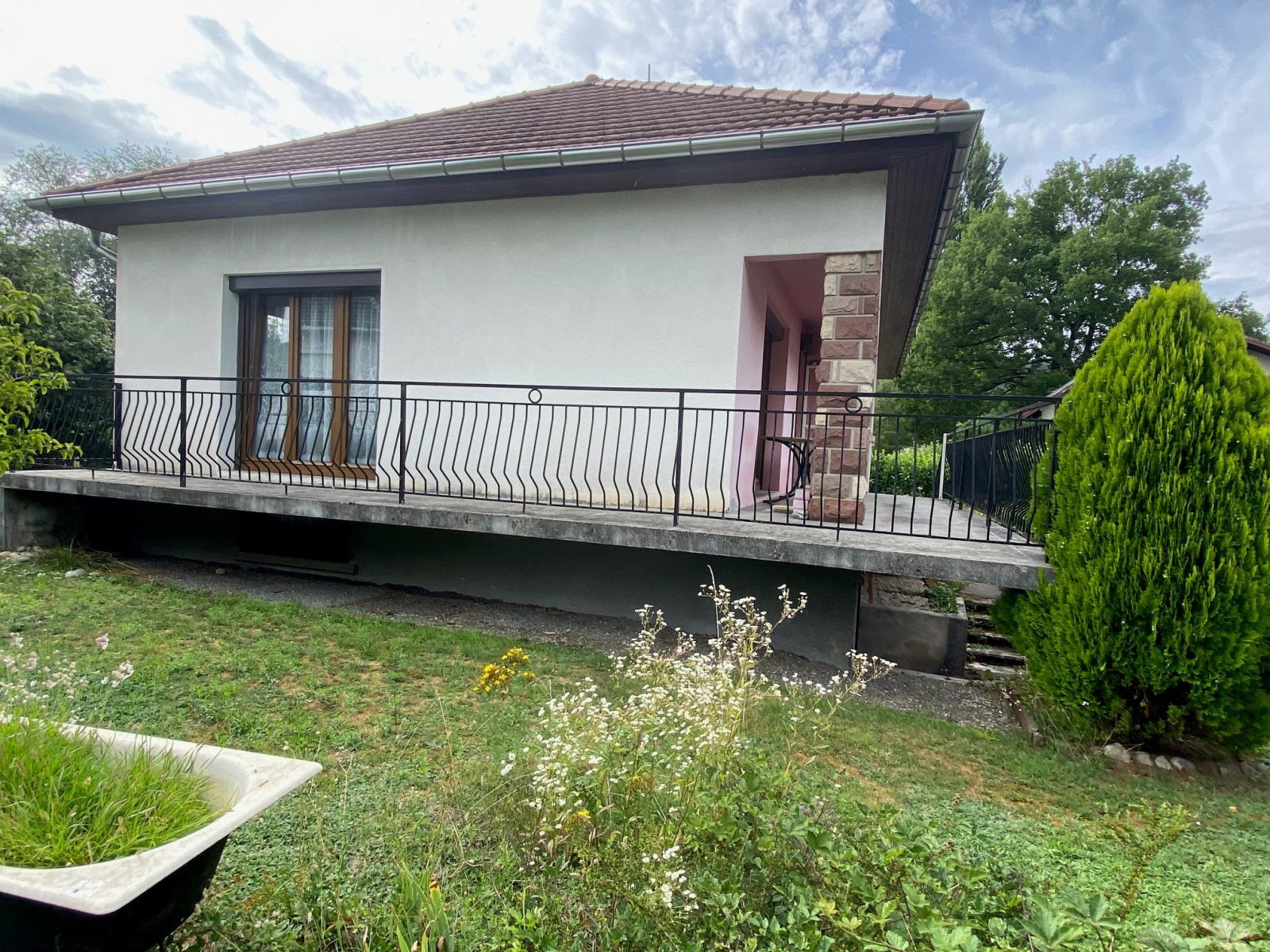 - Rez de chaussée surélevé : entrée sur couloir , cuisine indépendante, salle à manger et salon avec double accès à l'extérieur, trois chambres, salle d'eau renovée en 2018.