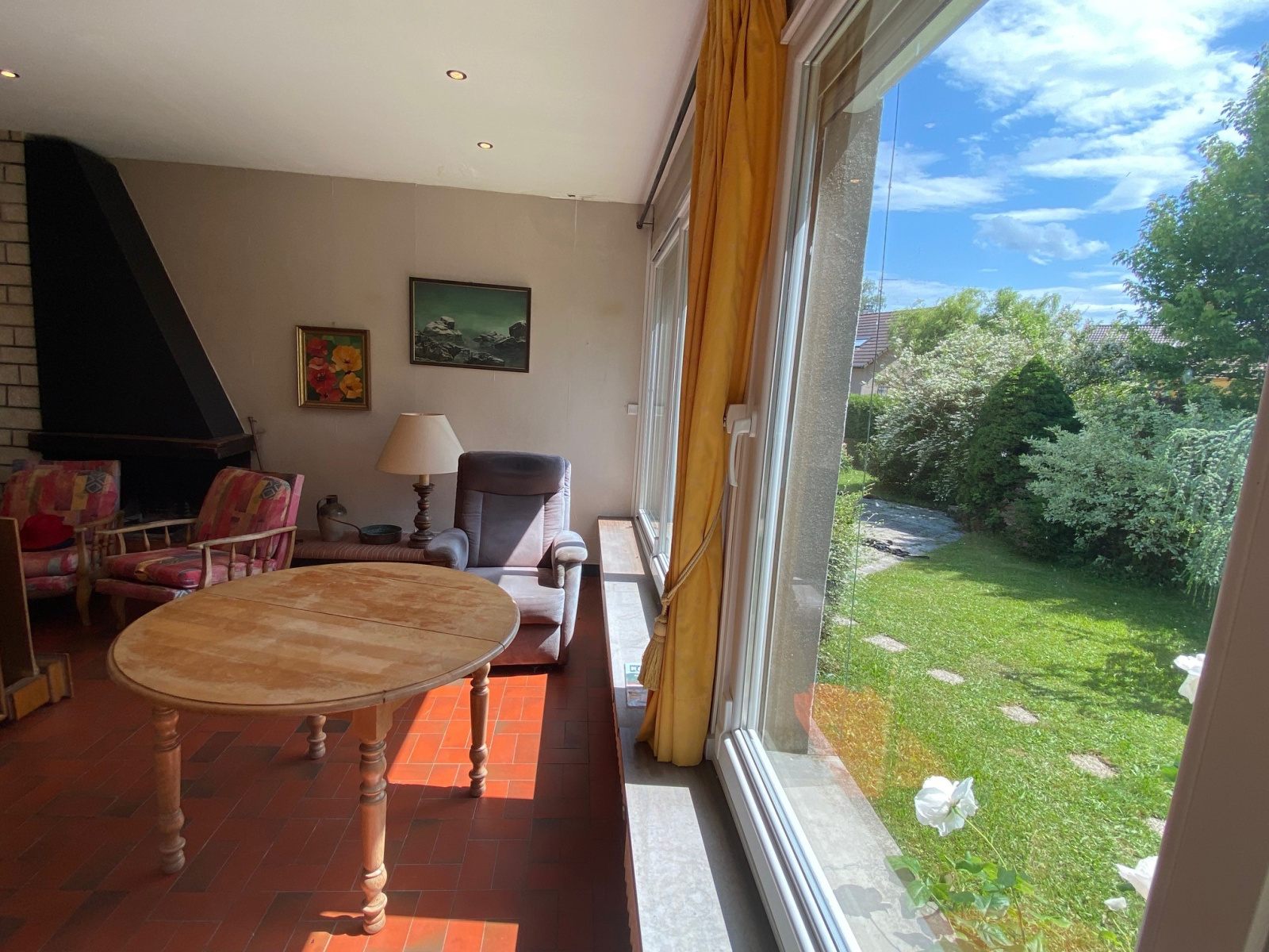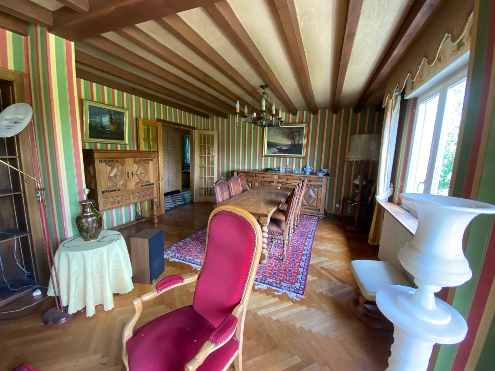 - au premier niveau : accès par un séjour de près de 25 m2 avec sa cheminée offrant une vue nature grâce à ses grandes fenêtres.