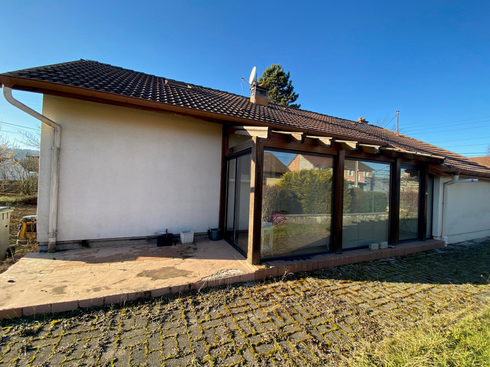 Notre agence vous propose en exclusivité à Valentigney au calme, proche de toutes les commodités, des écoles et du centre-ville, une maison de construction traditionnelle de plain-pied des années 1960, sur un joli terrain plat et clos de 7 ares 90.