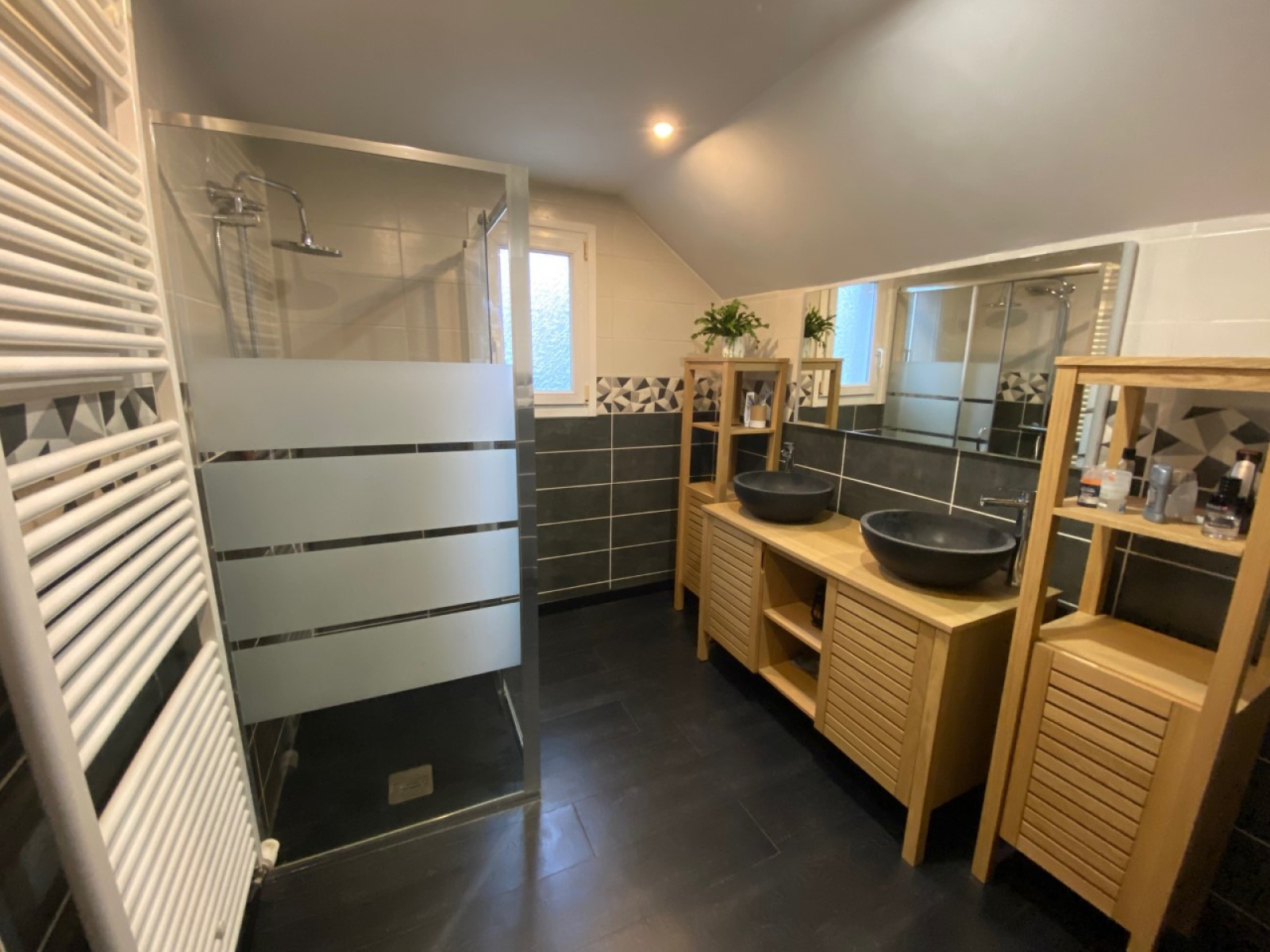 - Au demi niveau : une salle d'eau avec douche italienne