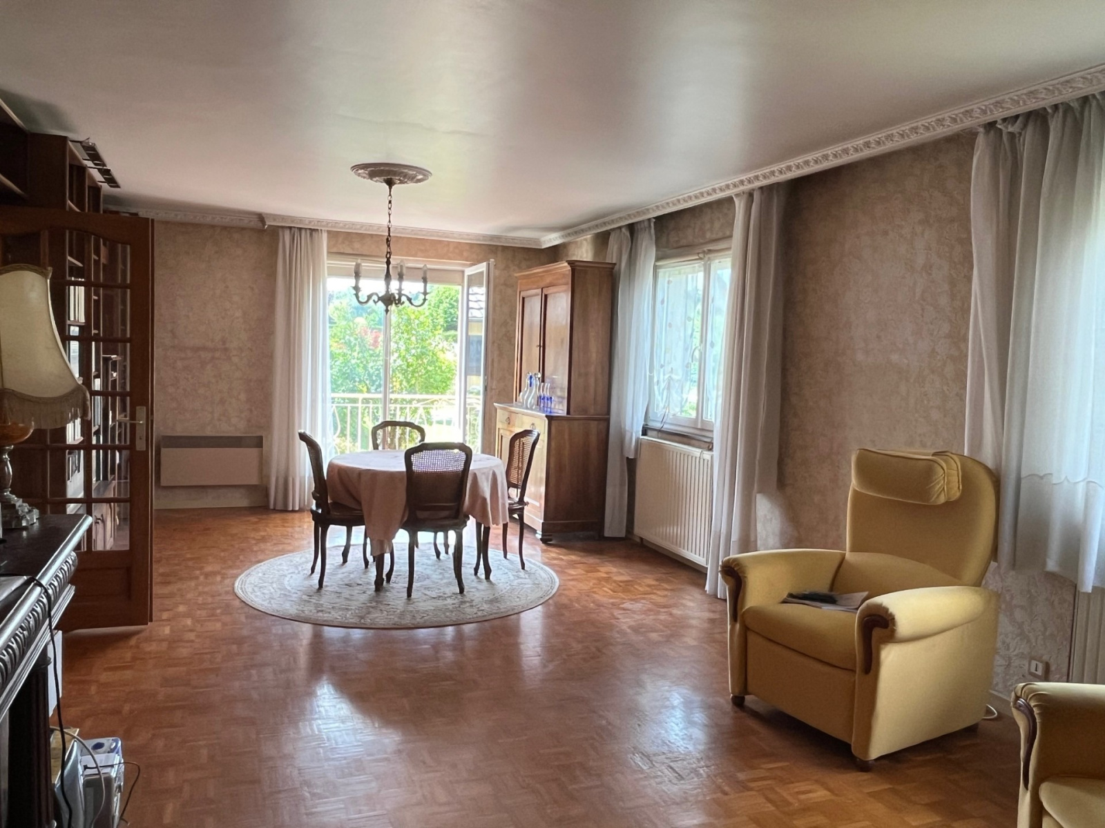 - au rez de chaussée sur un seul niveau : hall d'entrée, salon-salle à manger ( 37 m2 ) avec accès au balcon, cuisine séparée, salle de bains, trois chambres avec placards