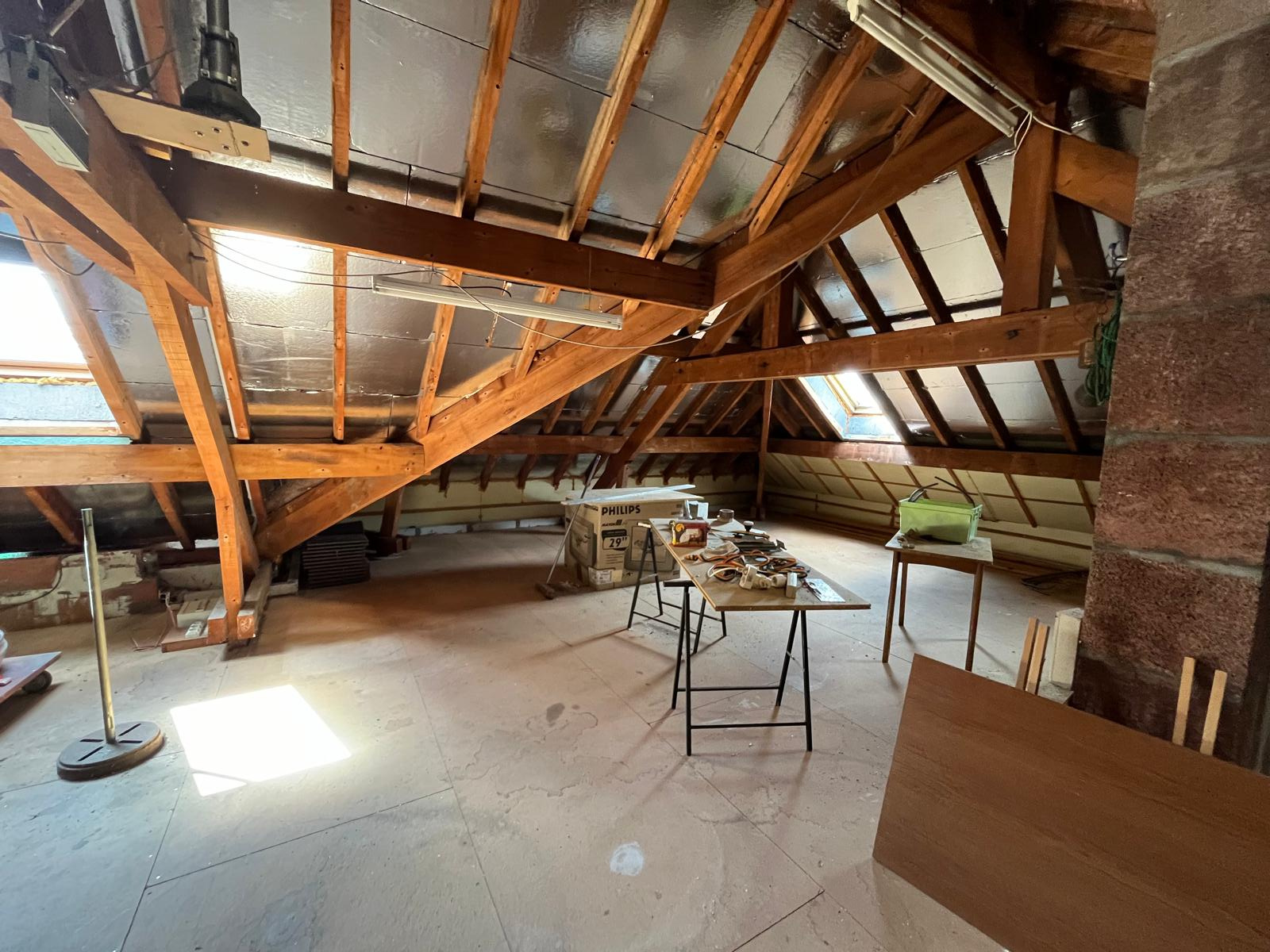 Grenier sur dalle non aménagé accessible par trappe avec hauteur sous plafond permettant la création d'un espace de vie supplémentaire.