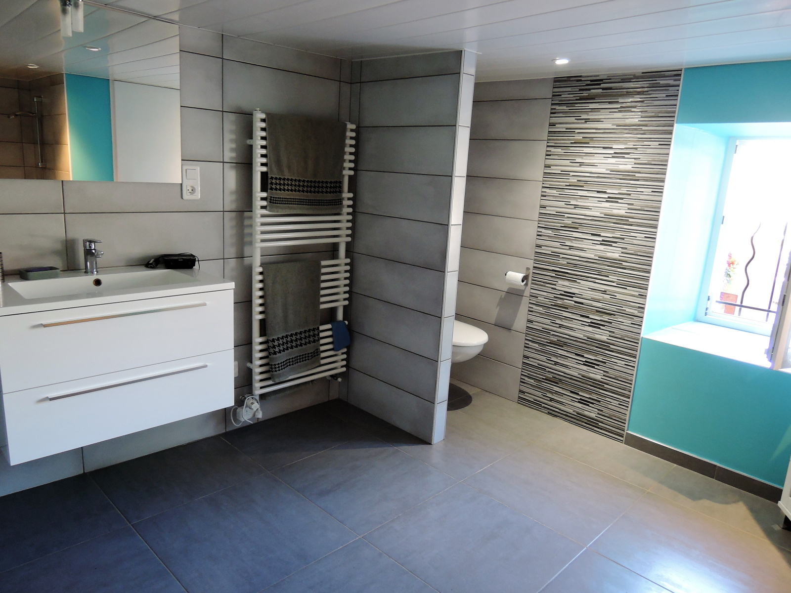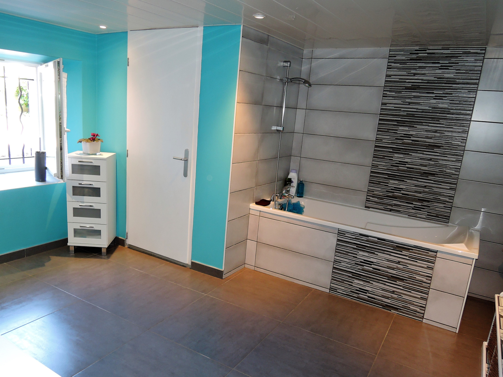 - un souplex: un cellier et une vaste salle de bain neuve avec wc, baignoire et espace buanderie
