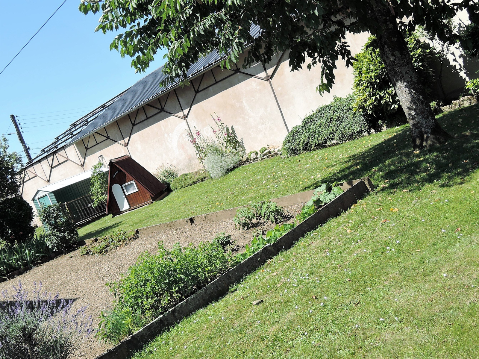 Le terrain, entièrement clos et aménagé, possède une cour intérieure, une terrasse, un jardin , un bûcher et un chalet de jardin.