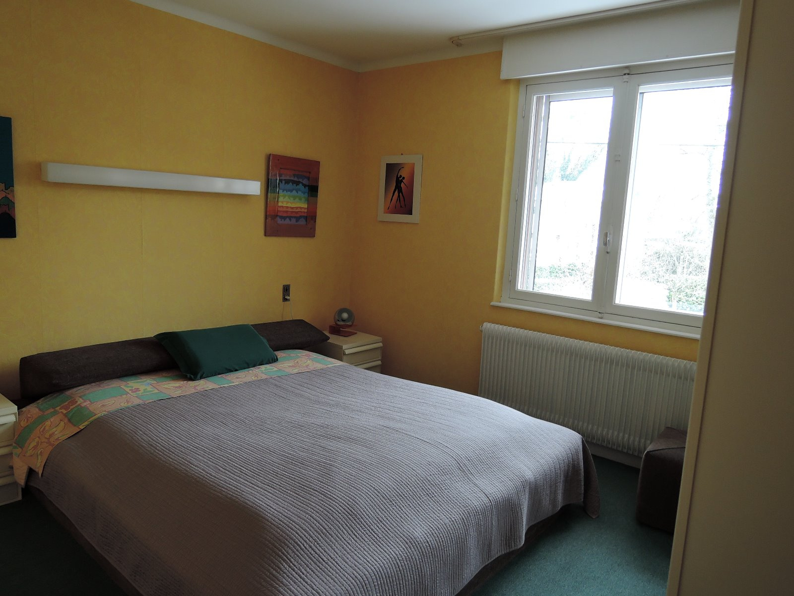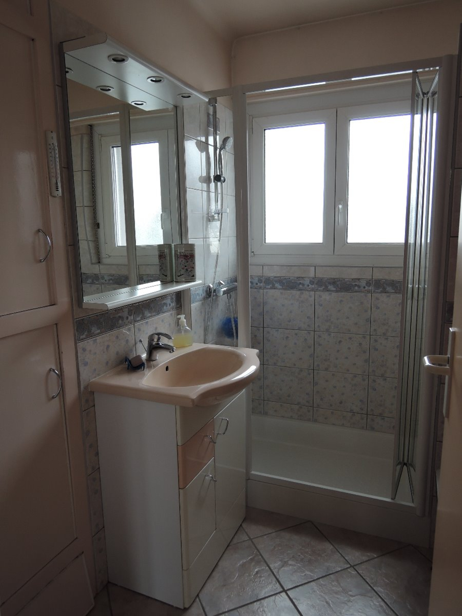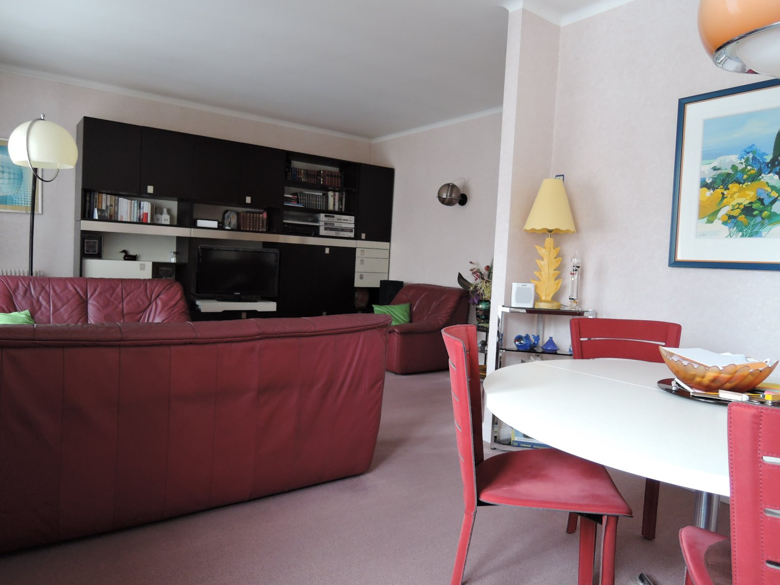 Le bien est organisé de la façon suivante : entrée, cuisine séparée de marque MOBALPA, salon séjour de 25 m2 avec accès sur un balcon, 2 chambres repectivement de de 12 et 10 m2, salle de bain avec douche, WC séparés.