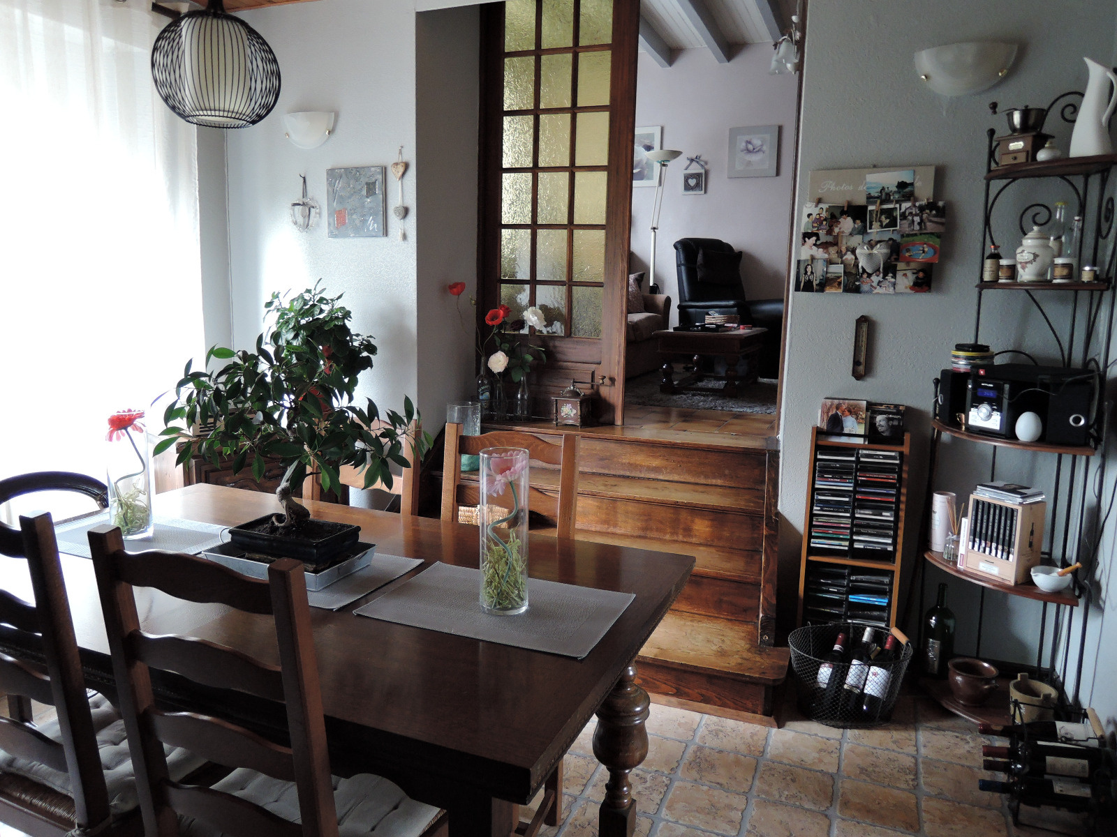 - au rez de chaussée : entrée avec toilette et lave main, cuisine semi ouverte sur salle à manger , un espace cuisine totalement ouvert sur salle à manger peut être crée, salon en demi nouveau qui donne beaucoup de charme avec accès pièce qui peut faire office de bureau ou de petite chambre d'appoint