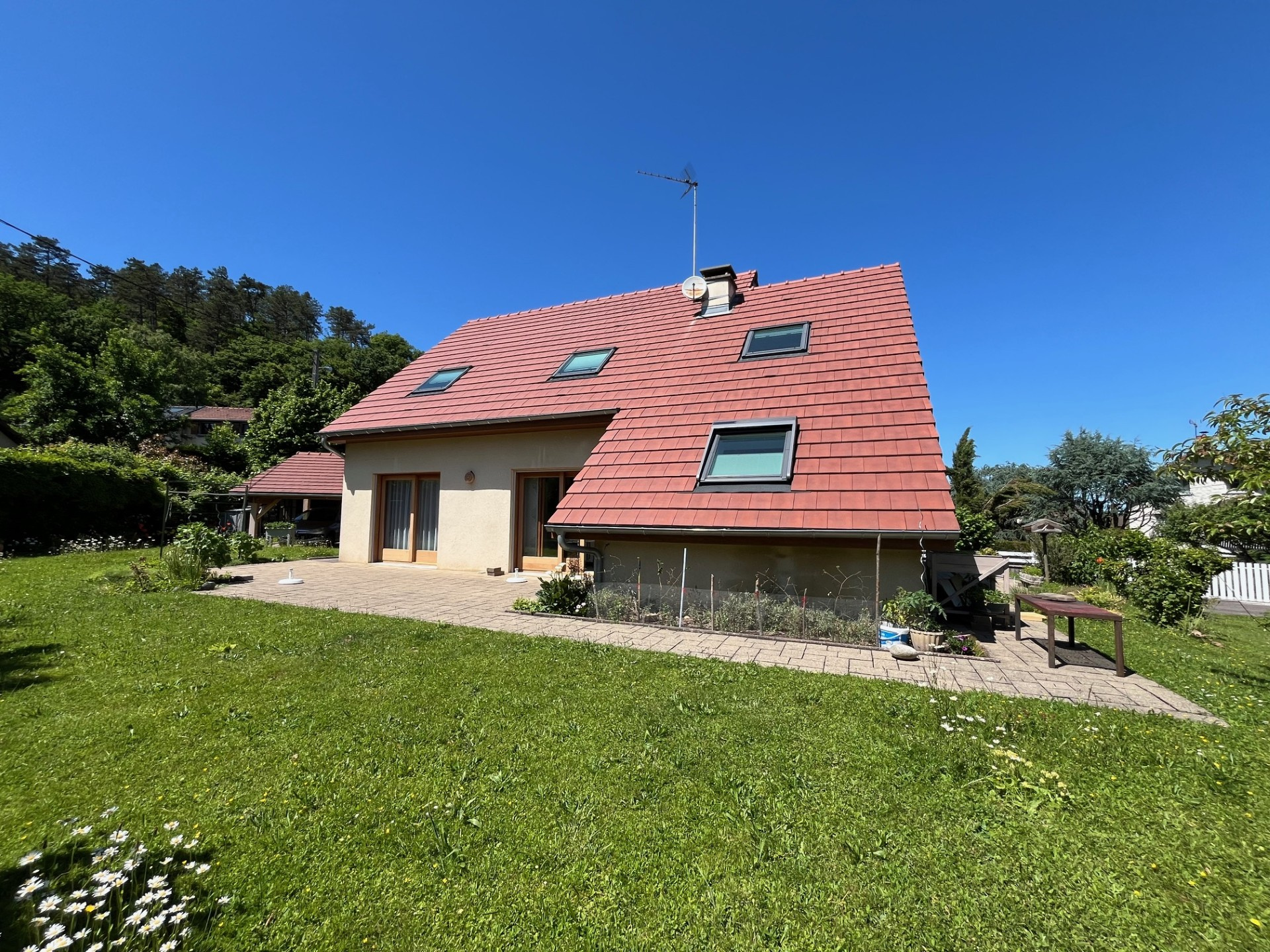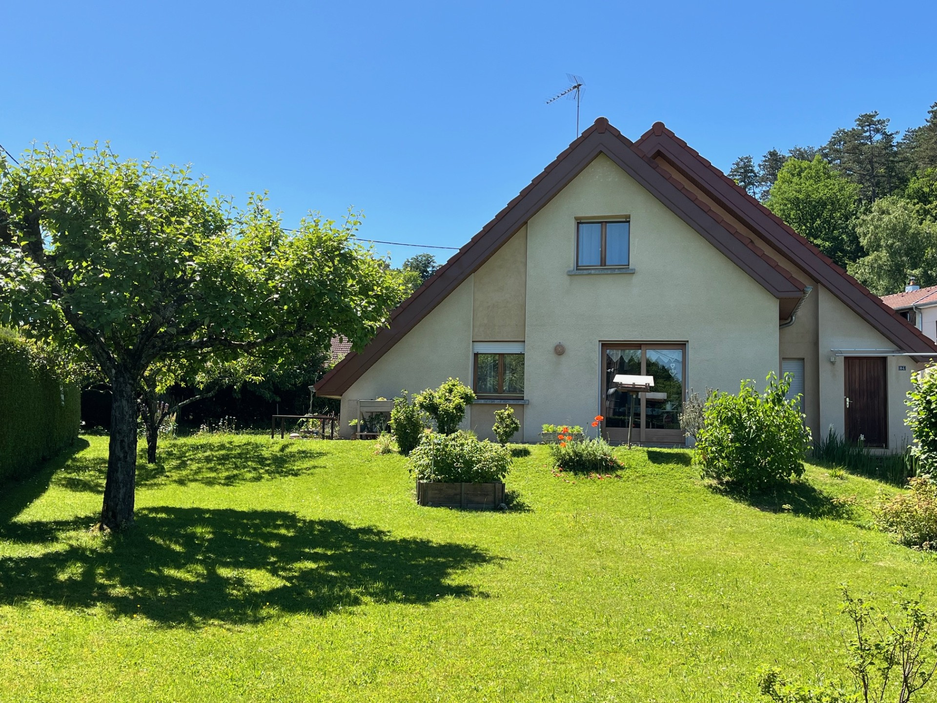 Notre agence vous propose en exclusivité à Valentigney, proche du centre ville et de l'ensemble des commodités ( commerces, professionnels de santé, écoles), une maison à l'architecture contemporaine dans sa conception construite en 1984 sur un joli terrain arboré de près de 9 ares.