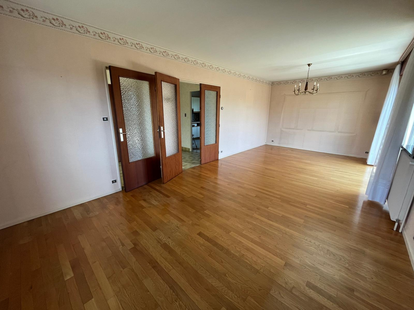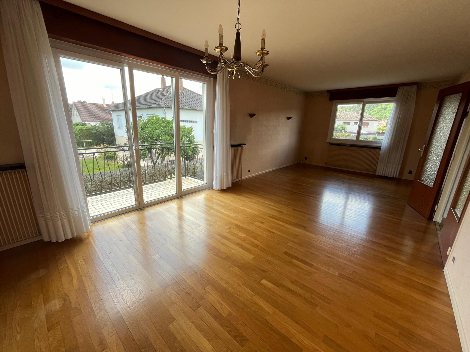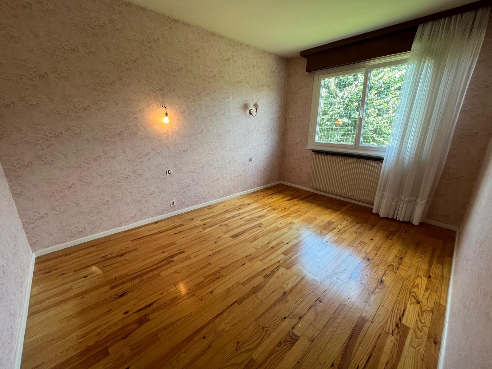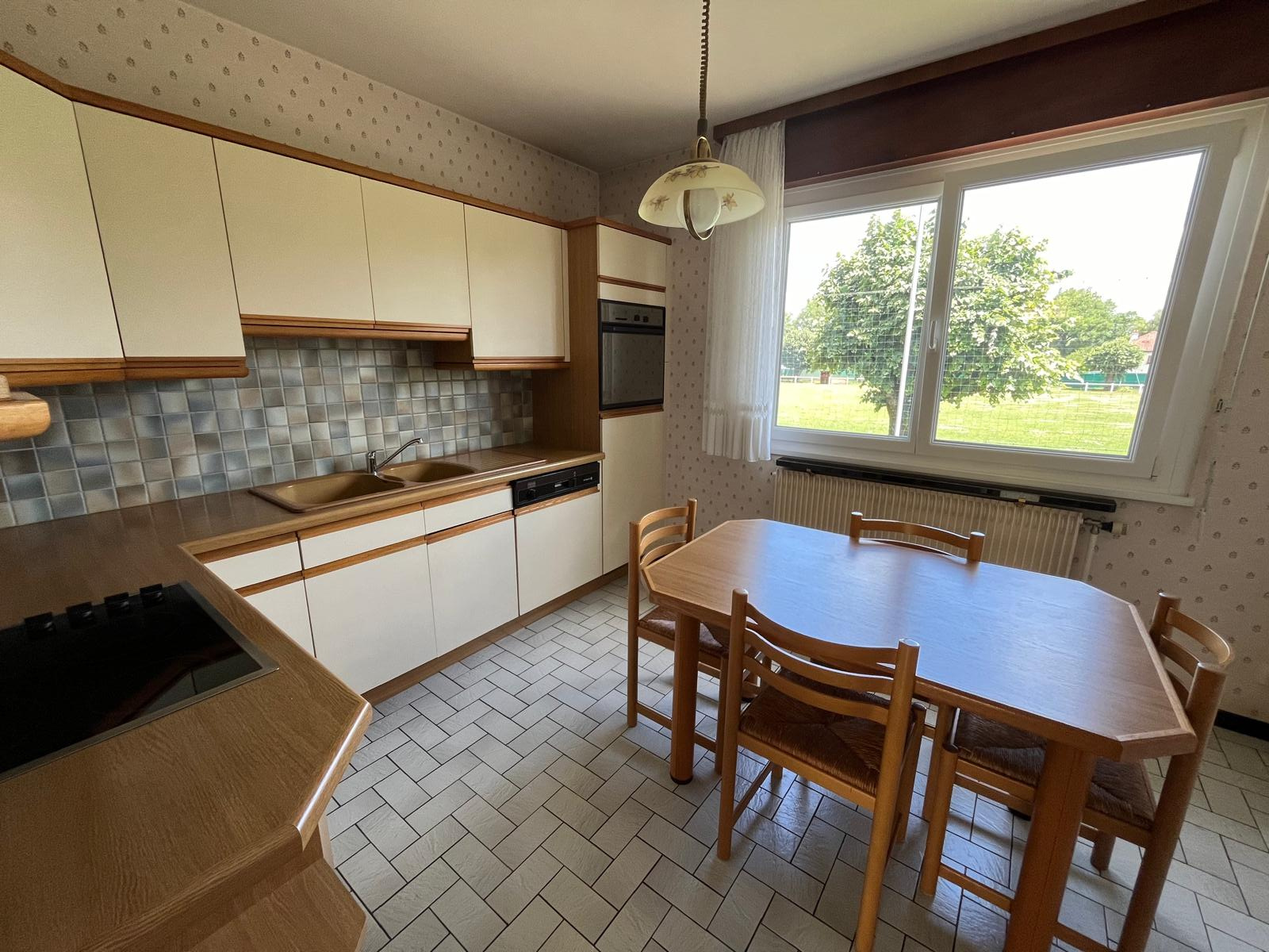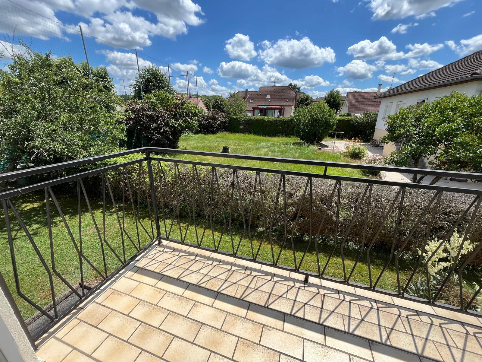 - au rez de chaussée sur élevé : entrée avec placard, cuisine séparée équipée ( four, réfrigérateur, plaque, lave vaisselle), pièce de vie de 28 m2 avec accès balcon, trois chambres, salle de bains avec baignoire et douche, WC séparé.