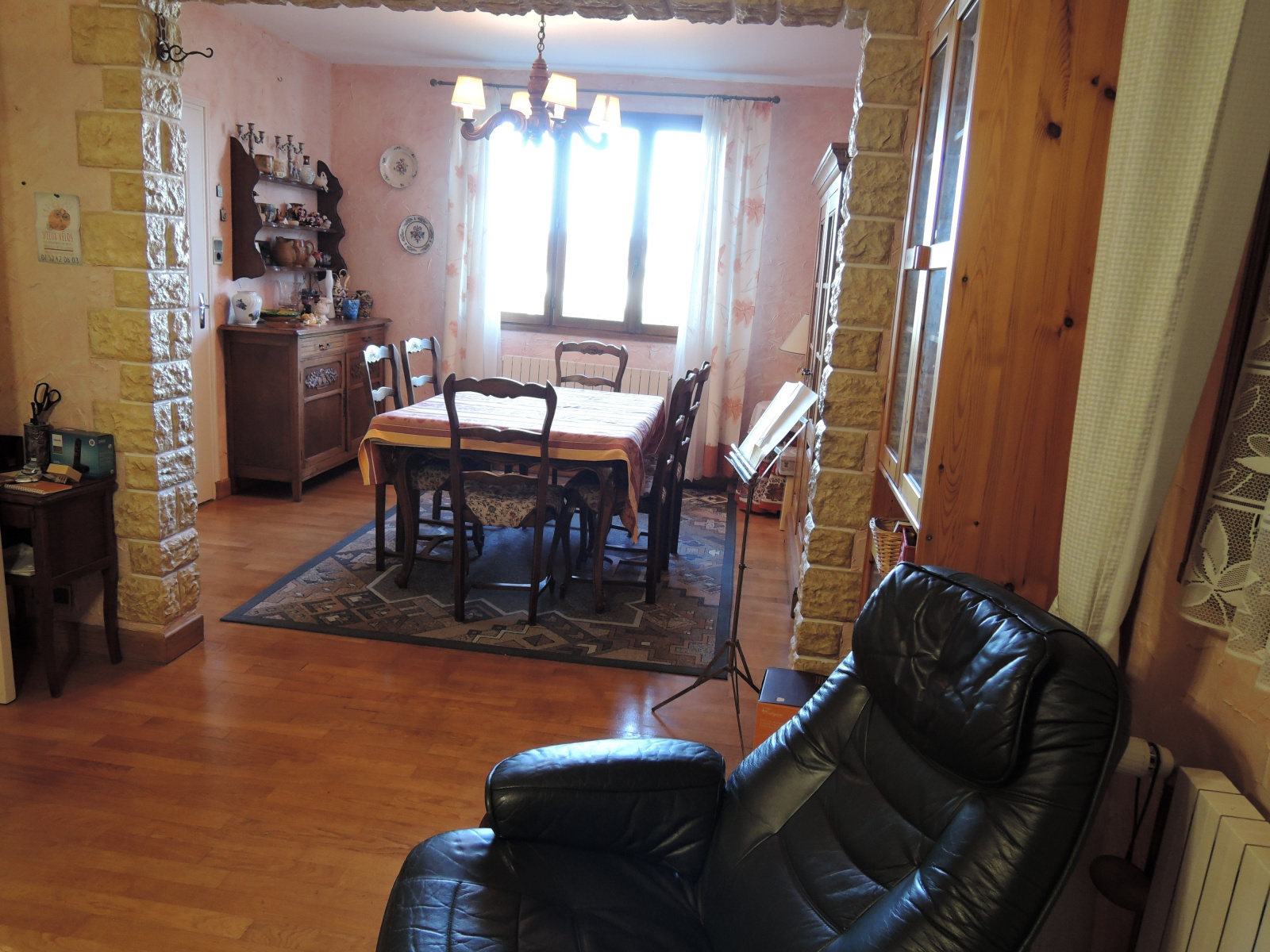 Au rez de chaussée surélevé: entrée, vaste salon-salle à manger de près de 28 m2, cuisine séparée, trois chambres de 9,5 à 12 m2, salle de bain, WC séparé.