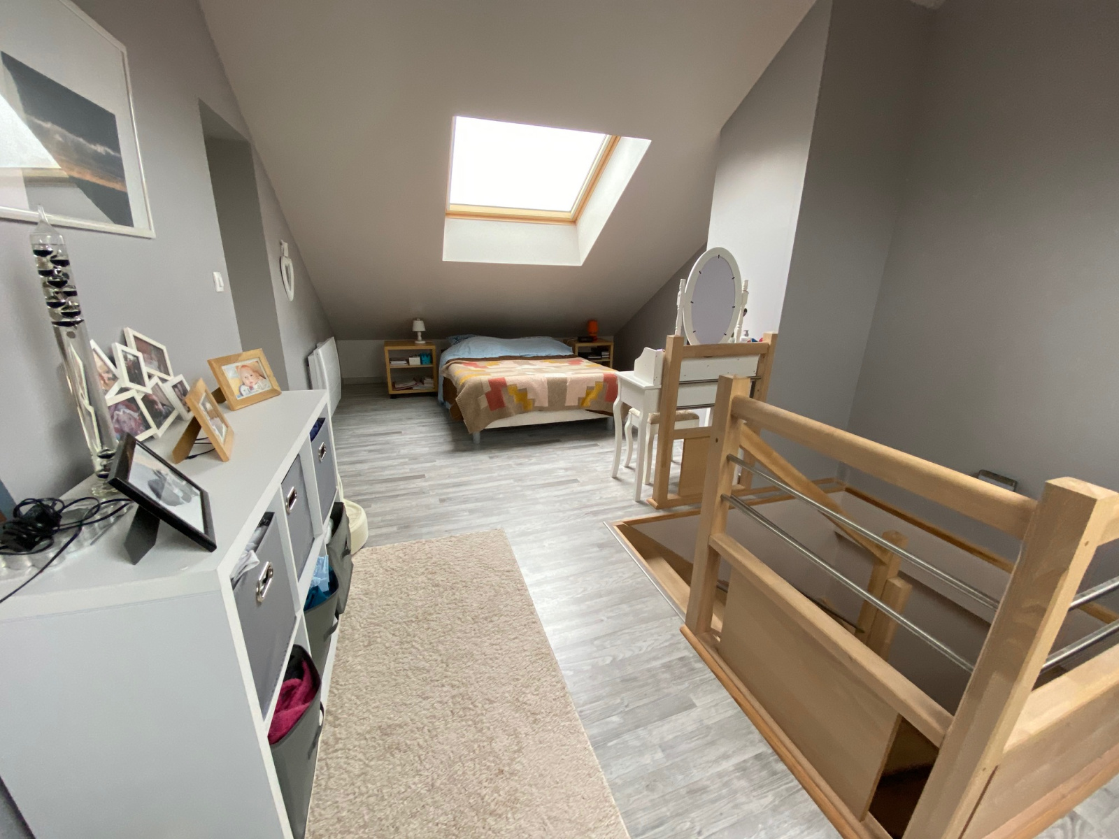 - au dernier niveau chambre parentale de près de 20 m2 , grenier. Cet espace dédié aux parents à été réalisé en 2016.( escalier, murs, sols, vélux, électricité).