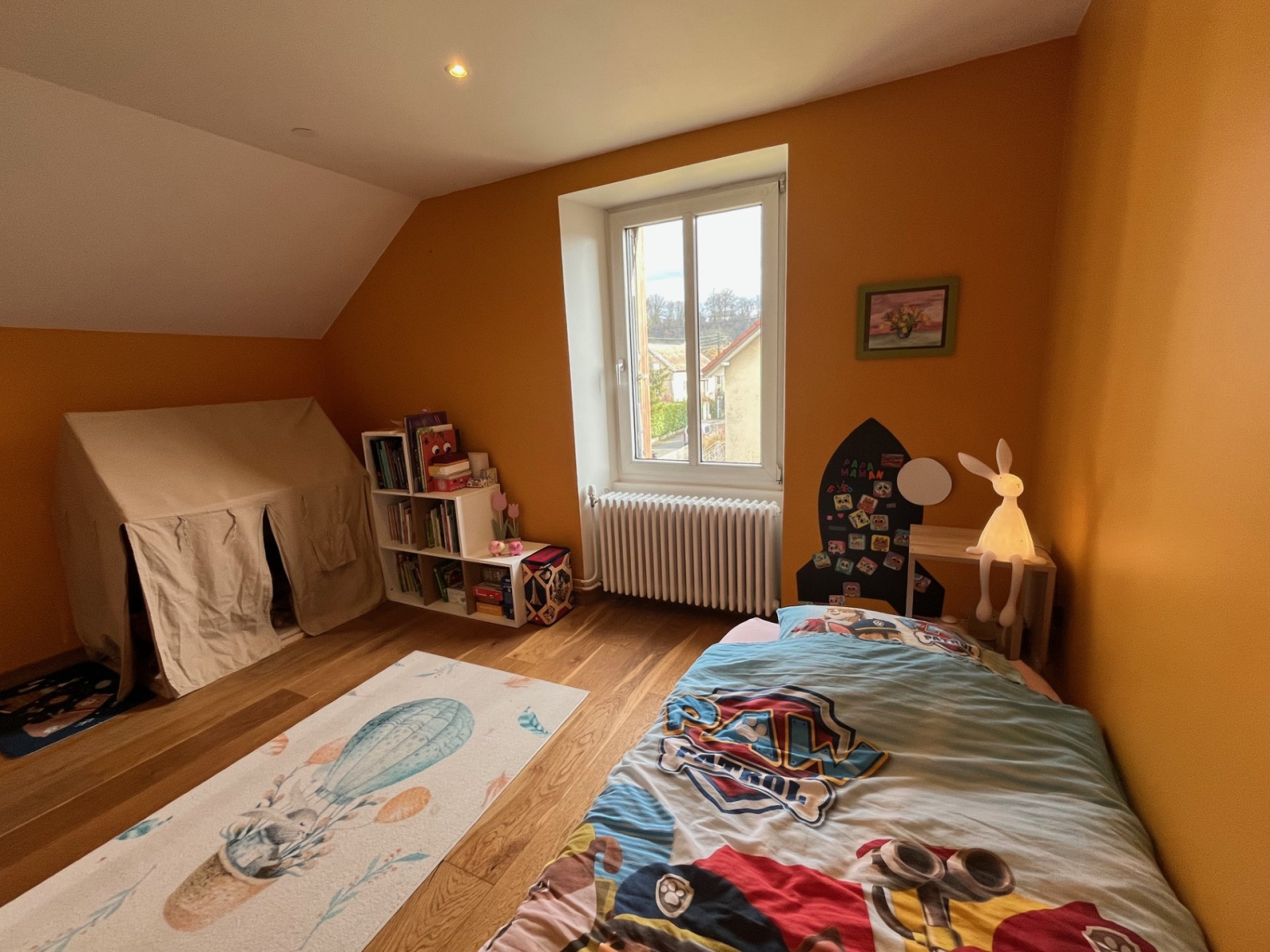 Caractéristiques techniques : chaudière gaz et poele à bois central, fenêtres PVC double vitrage sur toute la maison, cuisine MOBALPA et salle d'eau AUBADE.