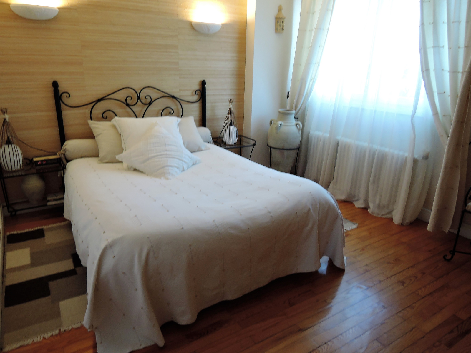 - au premier niveau: cuisine équipée, salle à manger avec porte vitrée donnant sur balcon filant, salon, chambre et salle de bain