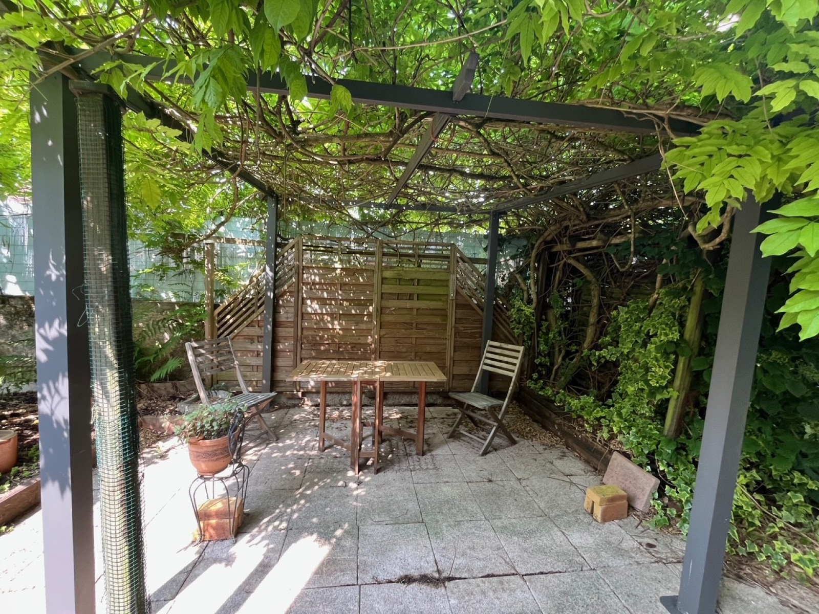La superficie totale de cet appartement est de 114 m2 grâce à la véranda de 36m2: cette vaste pièce de vie supplémentaire, lumineuse et évolutive (terrasse/salon/jardin d'hiver) permet également de bénéficier d'une entrée indépendante et d'un accès direct à un charmant jardin clos et arboré avec terrasse et pergola.