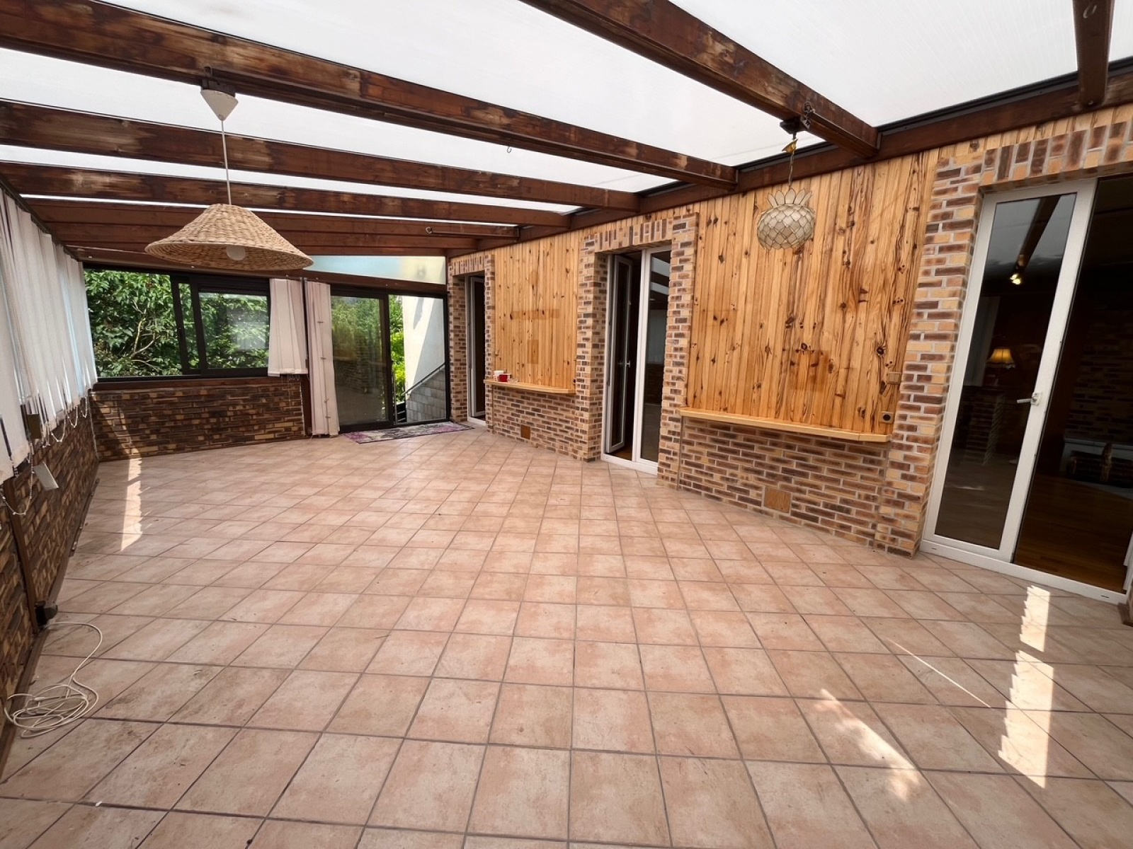 La grande double cave offre de belles fonctionnalités (buanderie/atelier/chaufferie) et capacités de stockage (bûcher pour le poele à bois/ 2ème garage pour petite voiture/ outils et équipements pour les 2 jardins...).