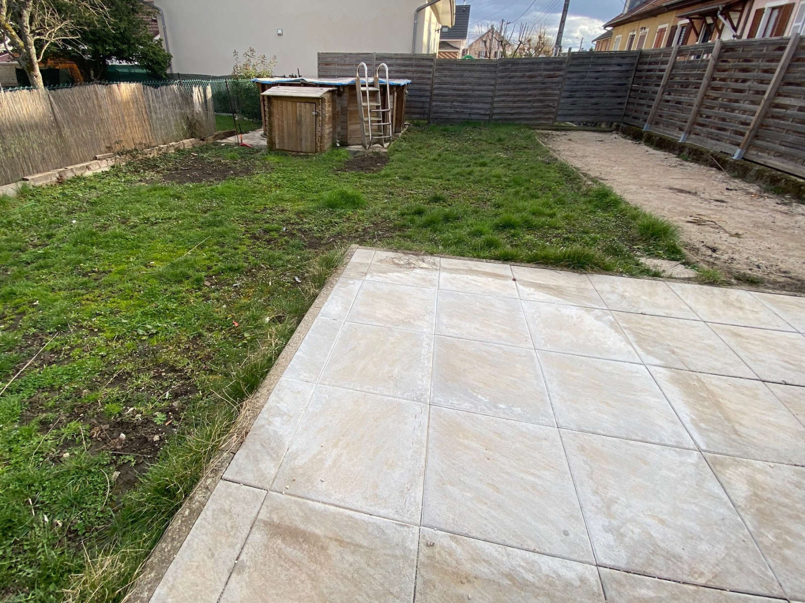 - 2 espaces extérieurs: un jardin exposition plein sud de 1.2 ares entièrement clos, aménagé avec terrasse carrelée, piscine hors sol et terrain de pétanque et une 2ème terrasse (couverte) avec son local de stockage.