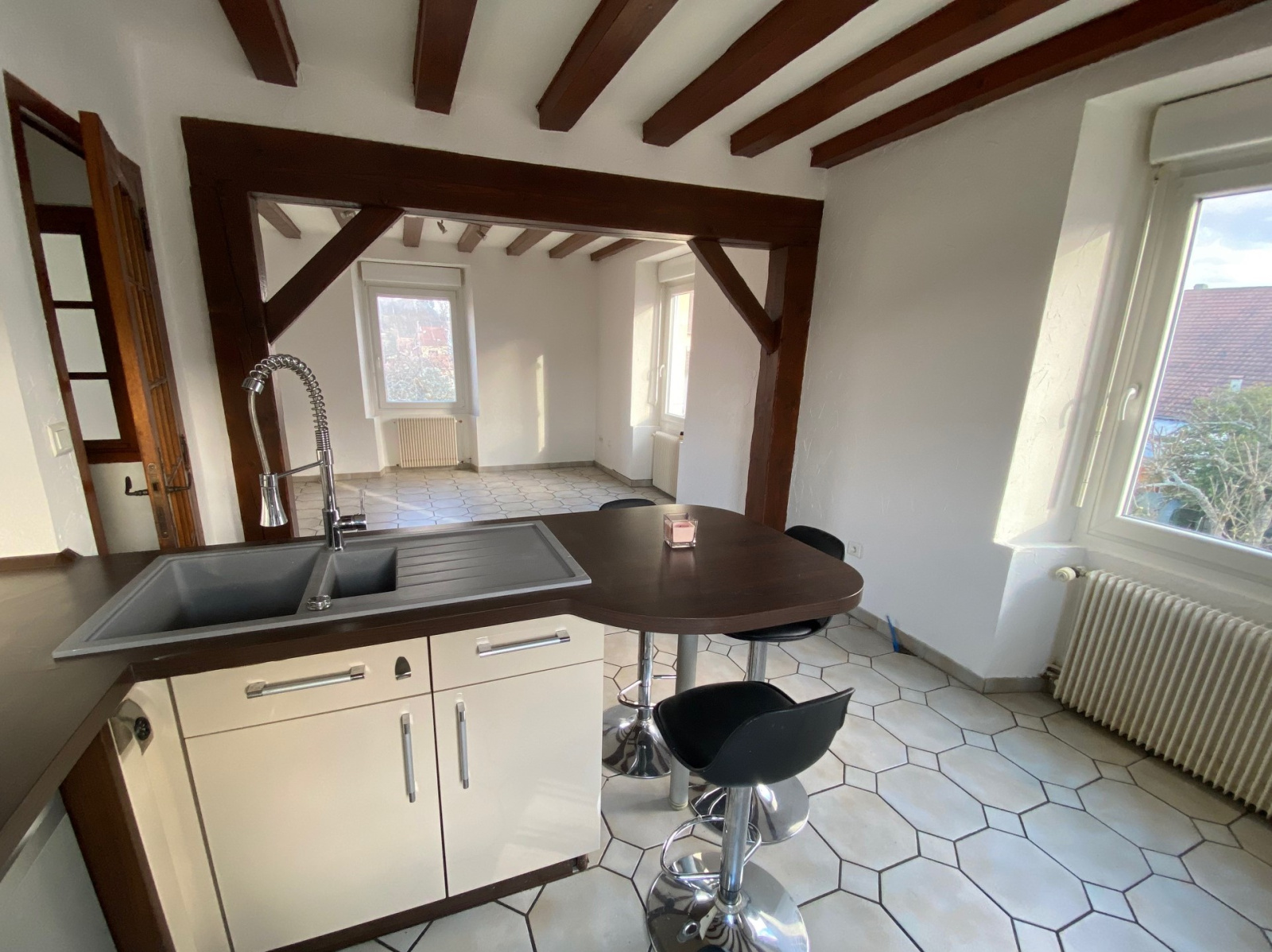 En exclusivité, notre agence vous propose à Valentigney, proche centre, au calme, un appartement de 70 m2 situé au 2ème étage d'une maison de ville scindée en 3 appartements sur 3 niveaux.