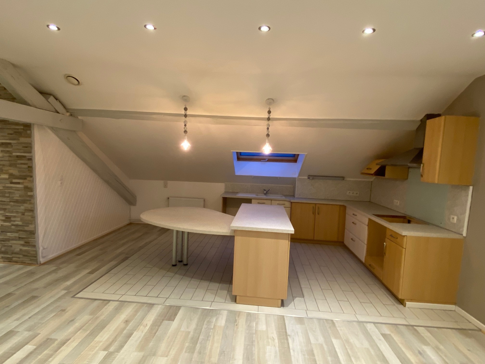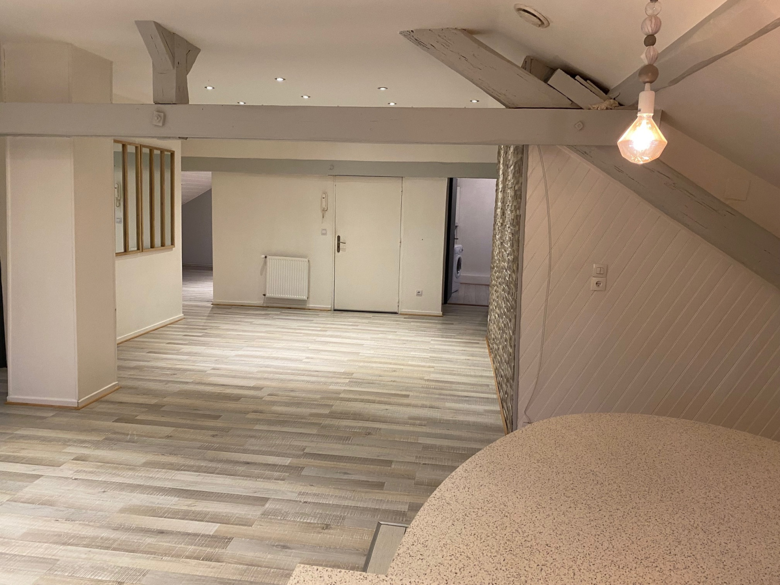 D'une superficie de 100 m2 au sol ( 85 m2 loi Carrez), l'appartement saura vous séduire par son côté atypique caractérisé notamment par le charme des poutres, ses beaux volumes et son mur en pierre de parement.