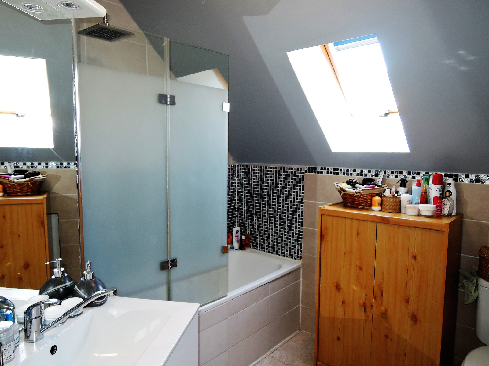 - à l'étage: 2 chambres et une pièce pouvant faire office de bureau ou de 3ème chambre, une salle de bain avec WC.