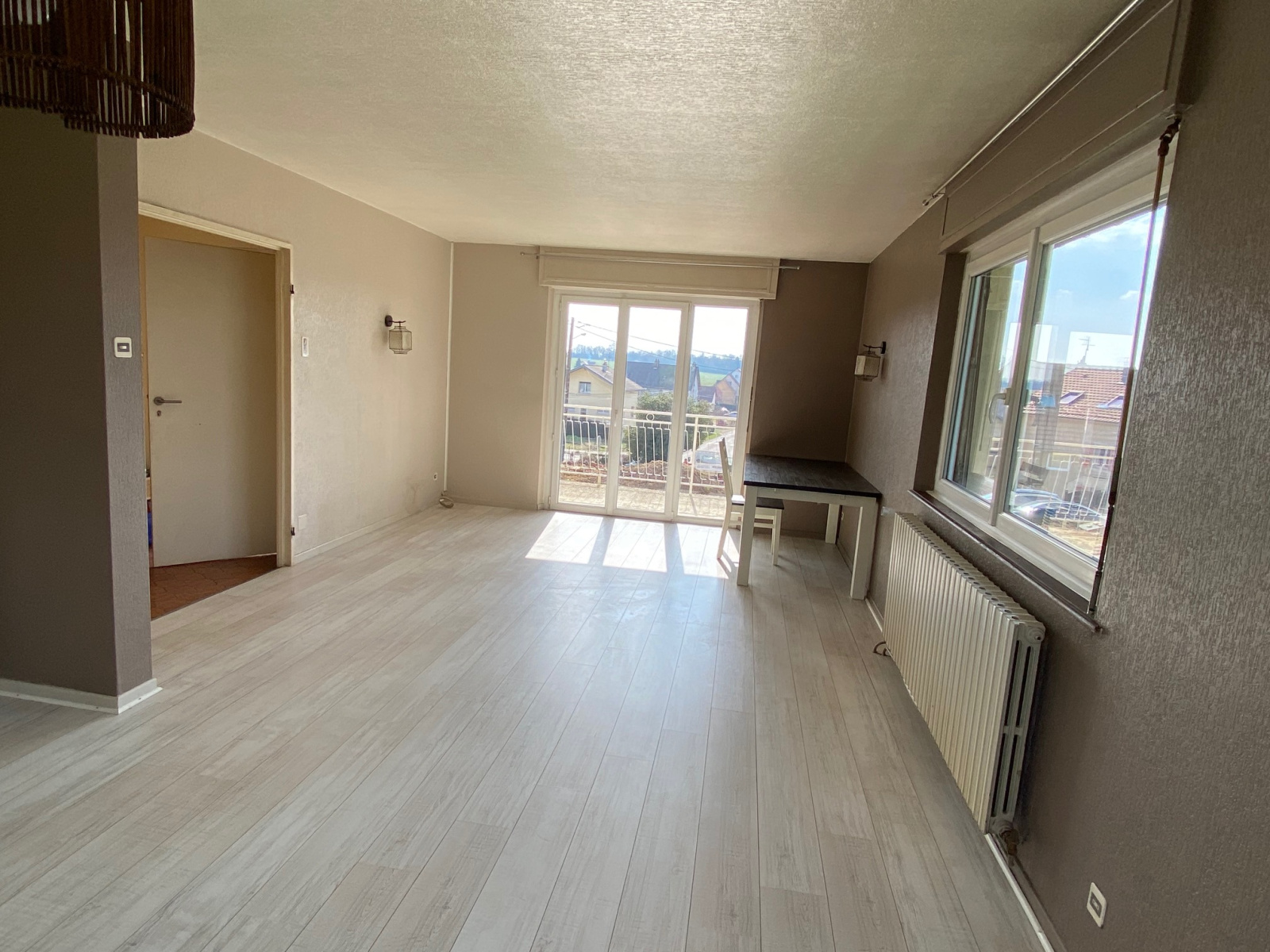 - en rez de chaussée sur élevé : entrée qui déssert un vaste salon salle à manger de 30 m2 avec accès balcon orienté au sud-ouest, cuisine séparée, salle de bain avec douche et baignoire, trois chambres de 10 à 12 m2.