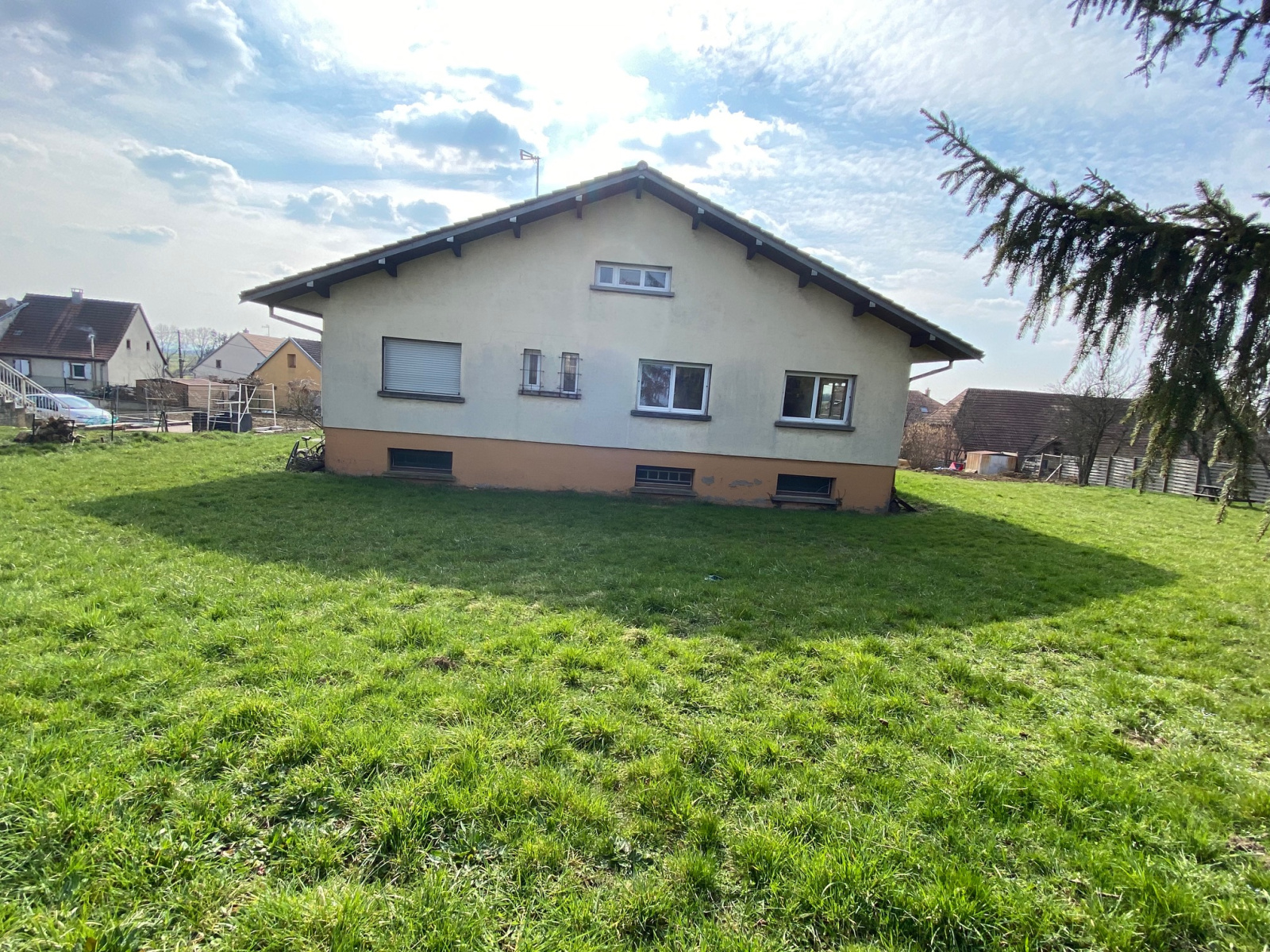 Notre agence vous propose en exclusivité à 10 mn de la gare TGV de Meroux-Moval, 10 mn de Belfort et 20 mn de Montbéliard, une vaste maison construite sur sous sol complet en 1974 de 140 m 2 érigée sur un terrain plat de près de 16 ares.